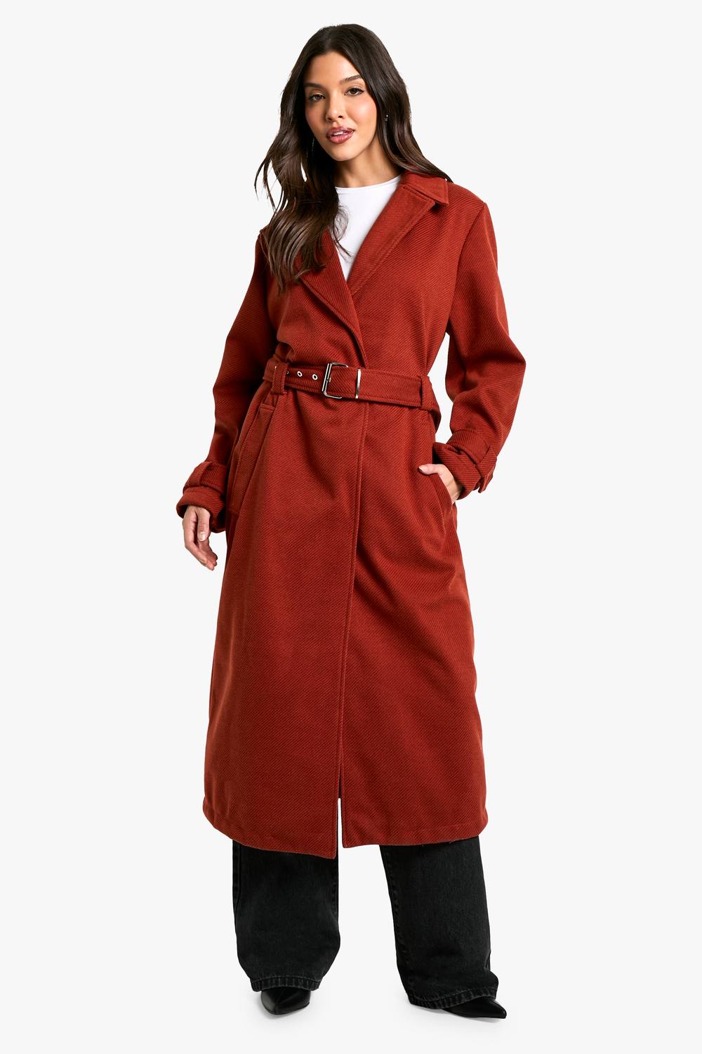 Langwerpige jas met een wolachtige textuur voor warmte en stijl Revers met inkeping voor een klassieke, verfijnde uitstraling Ceintuur in de taille om je silhouet te definieren en te flatteren Praktische zijzakken om belangrijke spullen binnen handbereik te houden Veelzijdig ontwerp, geschikt voor zowel casual als smart-casual gelegenheden Zet dit seizoen de toon met onze opvallende jas met ceintuur. Dit langlijnige kledingstuk heeft een luxueuze, wolachtige textuur, perfect om je warm te houden terwijl je er chic uitziet. Het revers met inkeping voegt een vleugje verfijning toe, terwijl de ceintuur in de taille je de mogelijkheid biedt om de pasvorm aan te passen en je rondingen te accentueren. Draag het over een fris wit topje en wijde broek voor een verzorgde uitstraling, ideaal voor familiebijeenkomsten of informele uitjes. Voor een meer ontspannen ensemble combineer je het met je favoriete jeans en sneakers. De zijzakken bieden praktische functionaliteit zonder concessies te doen aan stijl, waardoor deze jas een veelzijdige aanwinst voor je garderobe is. Of je nu gaat voor een informele lunch of een dagje shoppen, deze jas zorgt ervoor dat je moeiteloos stijlvol blijft en je comfortabel voelt. boohoo Dames Maxi Jas met Ceintuur in Wolachtige Look | Rust | Maat: 36