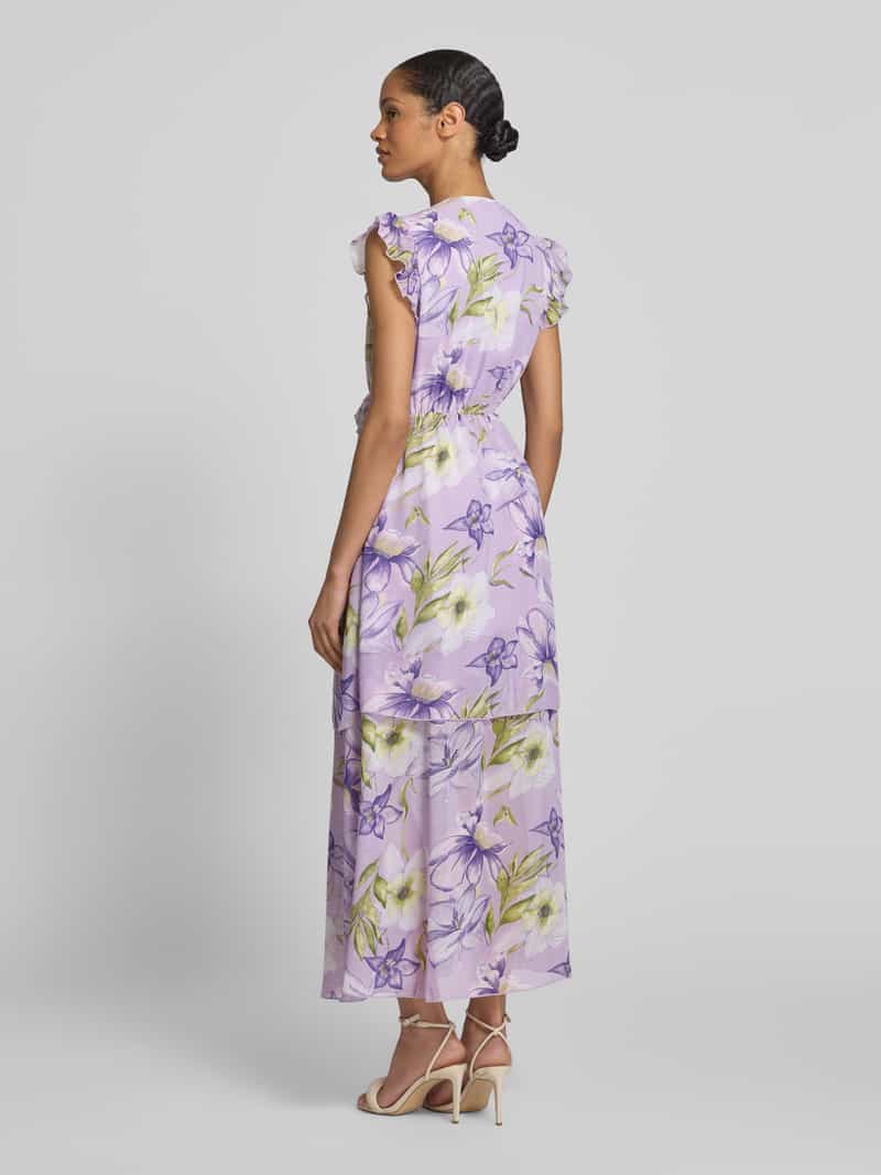 Maxi-jurk van Vila;Getailleerd model;V-hals;Model ‘ALICE’;Dubbele-laagjeslook;Volants;Ruglengte bij maat 36: 138 cm;Borstomvang bij maat 36: 49 cm;Mouwlengte bij maat 36: 6 cm