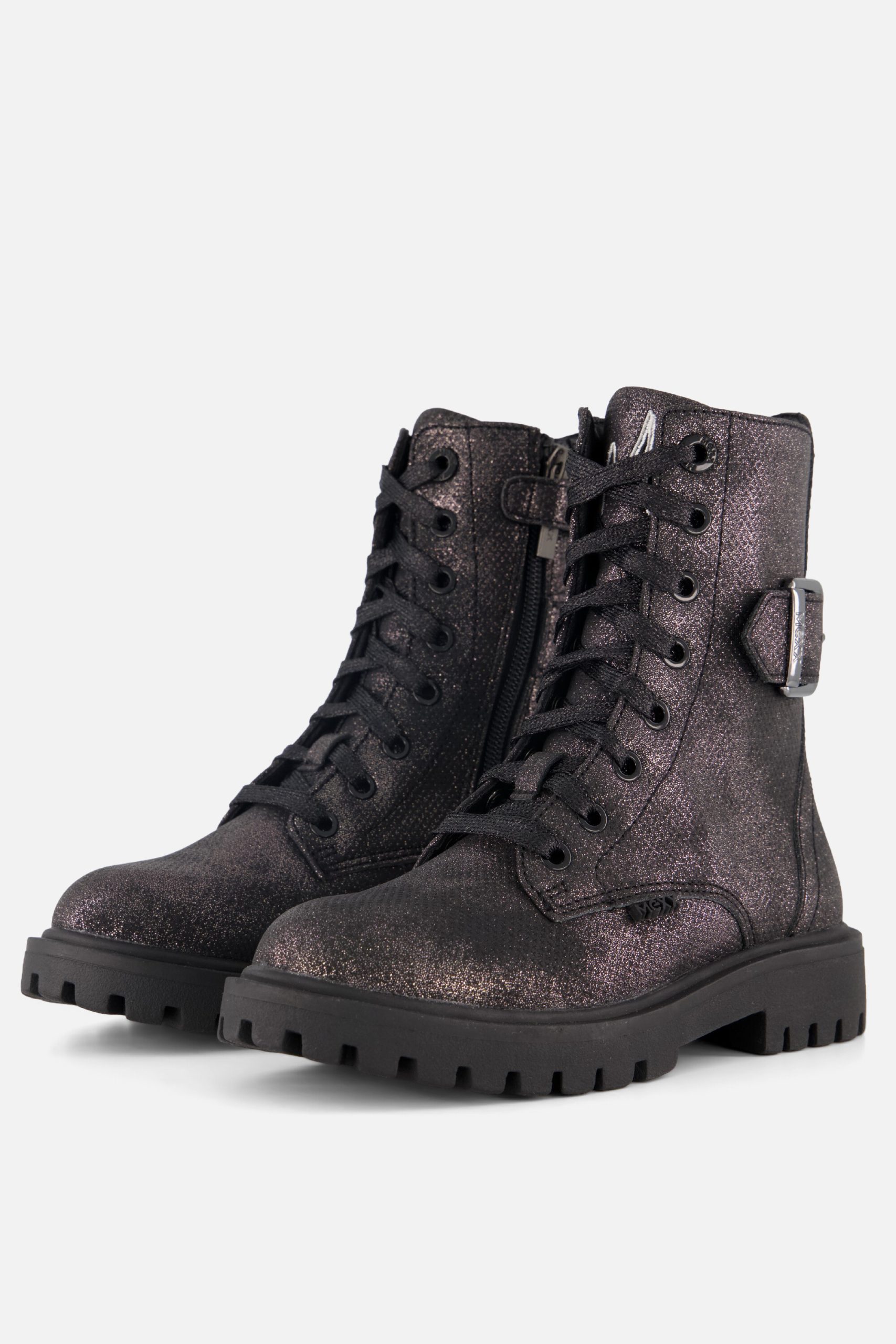 De Mexx Star veterboots stralen stijl uit met hun combinatie van textiel en synthetisch materiaal. Dankzij de ritssluiting en veters trek je ze zo aan. De opvallende metallic afwerking en de bekende Mexx-details maken de look compleet, terwijl de rubberen zool zorgt voor grip en comfort.
