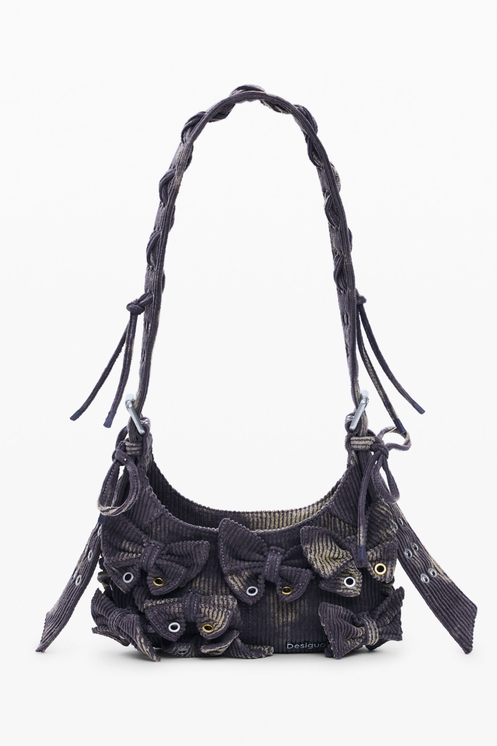 Middelgrote schoudertas met reliëf tie-dye stijl print en details van metalen oogjes.