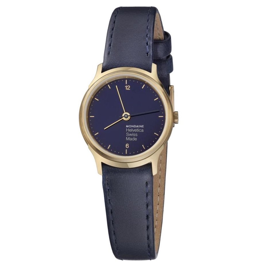 Dit elegante dameshorloge uit de Mondaine Helvetica Light-serie straalt minimalistische klasse uit. De goudkleurige roestvrijstalen kast (26 mm) combineert een glanzende en matte afwerking en wordt beschermd door krasbestendig, ontspiegeld saffierglas. Een tijdloos designicoon dat Zwitserse precisie en stijl perfect samenbrengt.