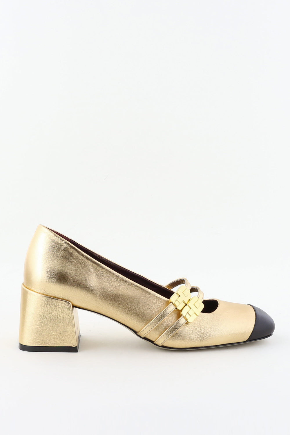 Zie hier de Morobe pumps Faith in een verfijnde soft gold tint. Deze elegante schoenen zijn vervaardigd uit metallic leer en hebben een hakhoogte van 5,5 cm voor ultiem comfort. Perfect te combineren met diverse outfits dankzij hun veelzijdige ontwerp. Onderhoud eenvoudig met Carbon pro. Artikelnummer: 04.