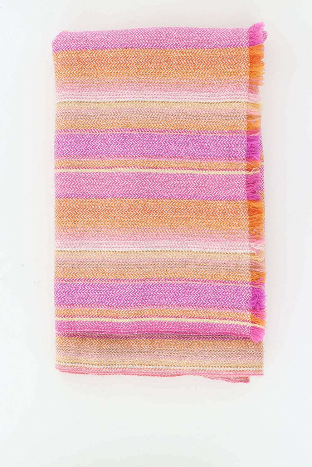 Zie hier de Mouleta shawl multicolour, een verfijnde accessoire van 100% cashmere. Met afmetingen van 210 x 80 cm biedt deze sjaal zowel stijl als comfort. De handwas zorgt voor langdurige zachtheid en kwaliteit. Verkrijgbaar in roze, multicolour, wit, oranje en paars. Artikelnummer: 1505-331.