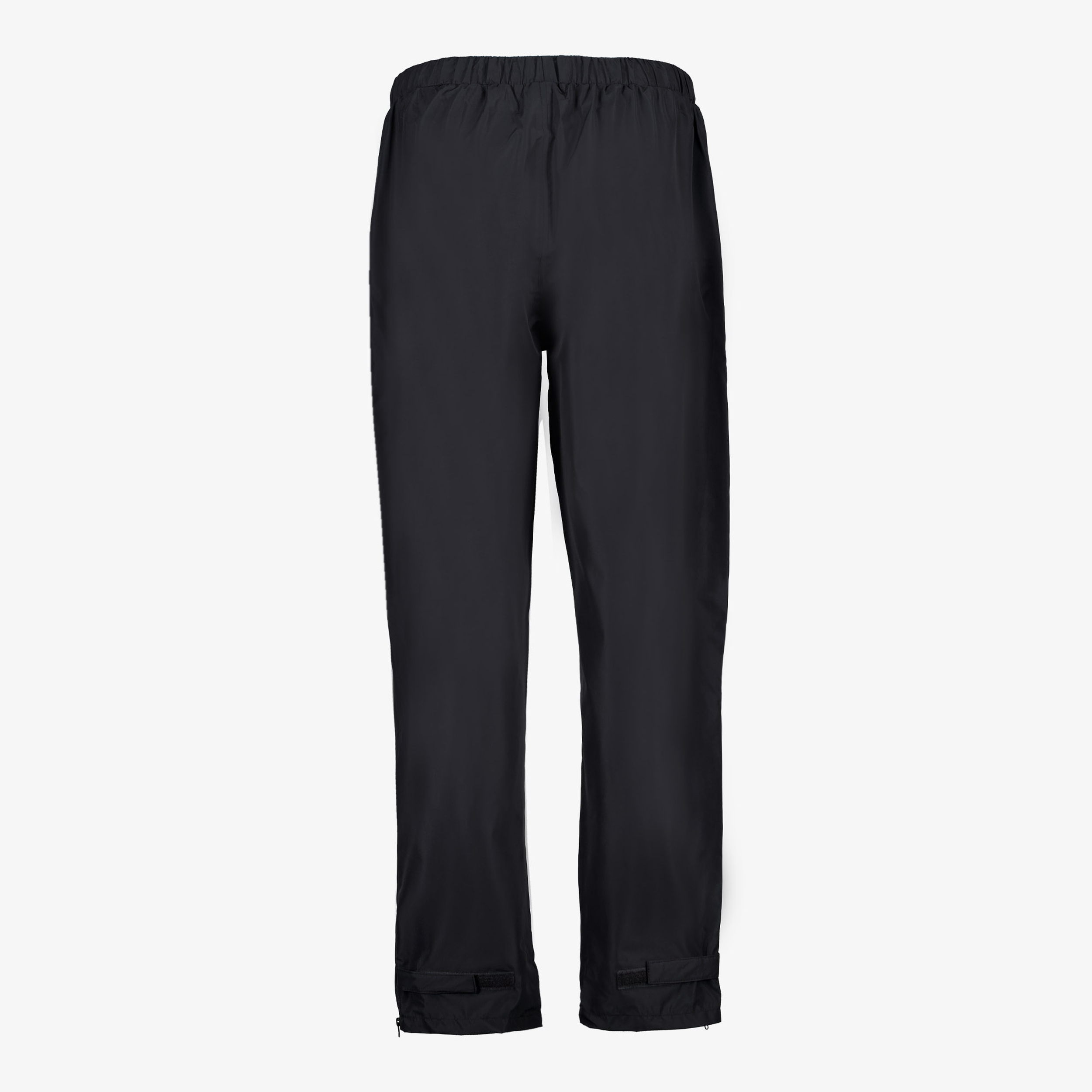 Zwarte regenbroek voor dames van Mountain Peak. De regenbroek heeft een elastische tailleband met aansnoerkoordjes voor een optimale pasvorm. Voorzien van twee zakken met ritsen, ritsen in de broekspijpen en klittenbandsluitingen, zodat je ze goed aan kunt snoeren. De regenbroek is gemaakt van 100% polyester. De waterkolom is 10.000 mm.