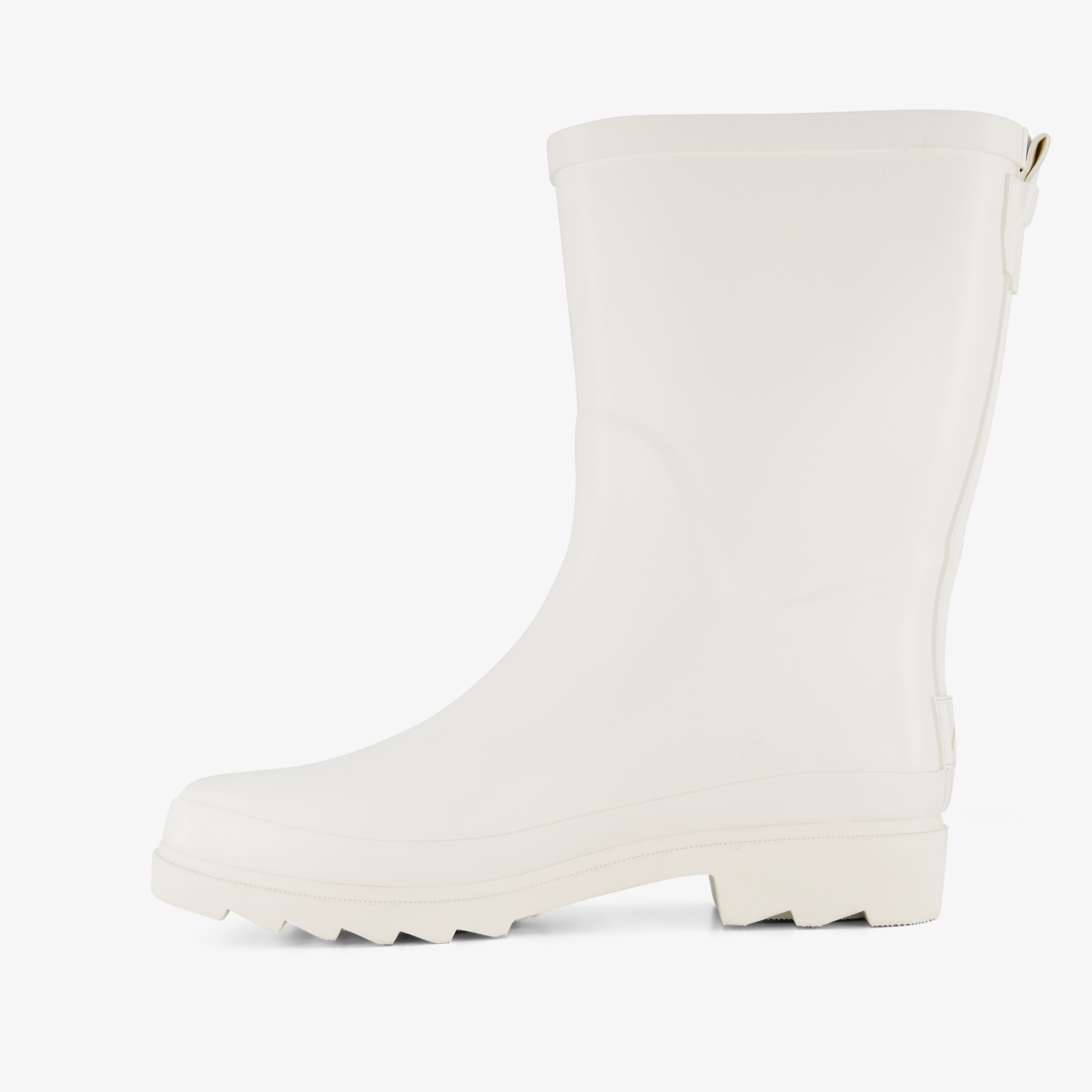 Witte regenlaarzen voor dames van Mountain Peak. Deze stijlvolle regenlaarsjes zijn voorzien van een decoratieve gesp aan de bovenzijde. Gemaakt van rubber met een binnenwerk van textiel en een rubberen zool.