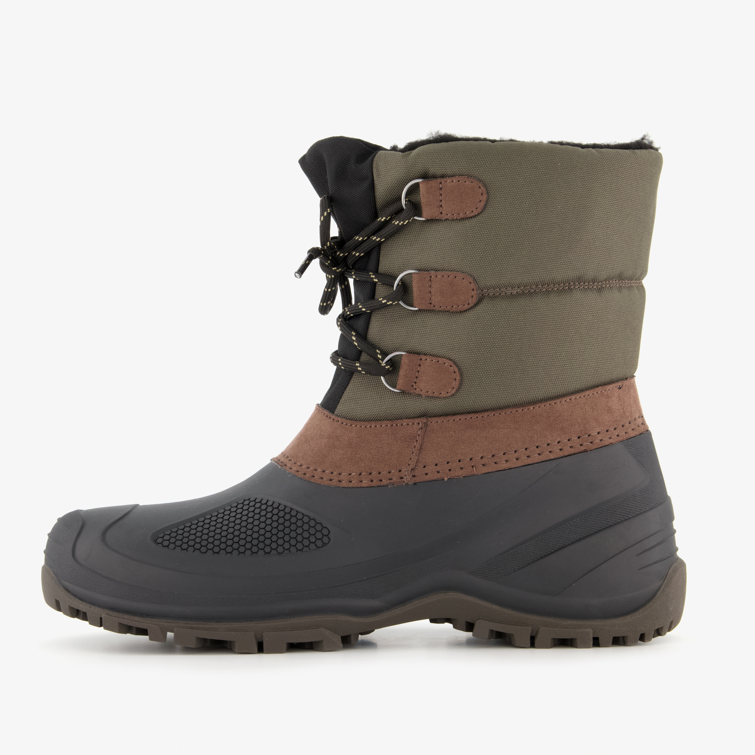 Bruine, gevoerde snowboots voor heren van Mountain Peak. Gemaakt van imitatieleer met een zachte, warme voering van textiel en een stevige profielzool van rubber. Deze waterdichte snowboots zijn voorzien van een vetersluiting. De binnenzool is niet uitneembaar.
