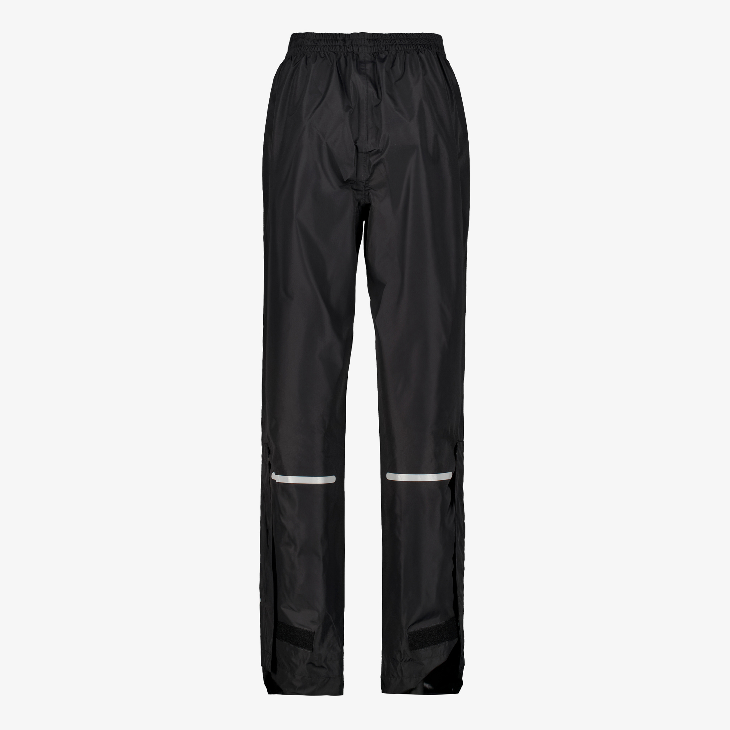 Zwarte regenbroek voor dames en heren uit de Mountain Peak collectie. Voorzien van een elastische tailleband en reflecterende accenten op de benen zodat je goed opvalt in het verkeer. De regenbroek heeft voeten zodat de broek goed blijft zitten en je volledig droogt blijft. Gemaakt van polyester.