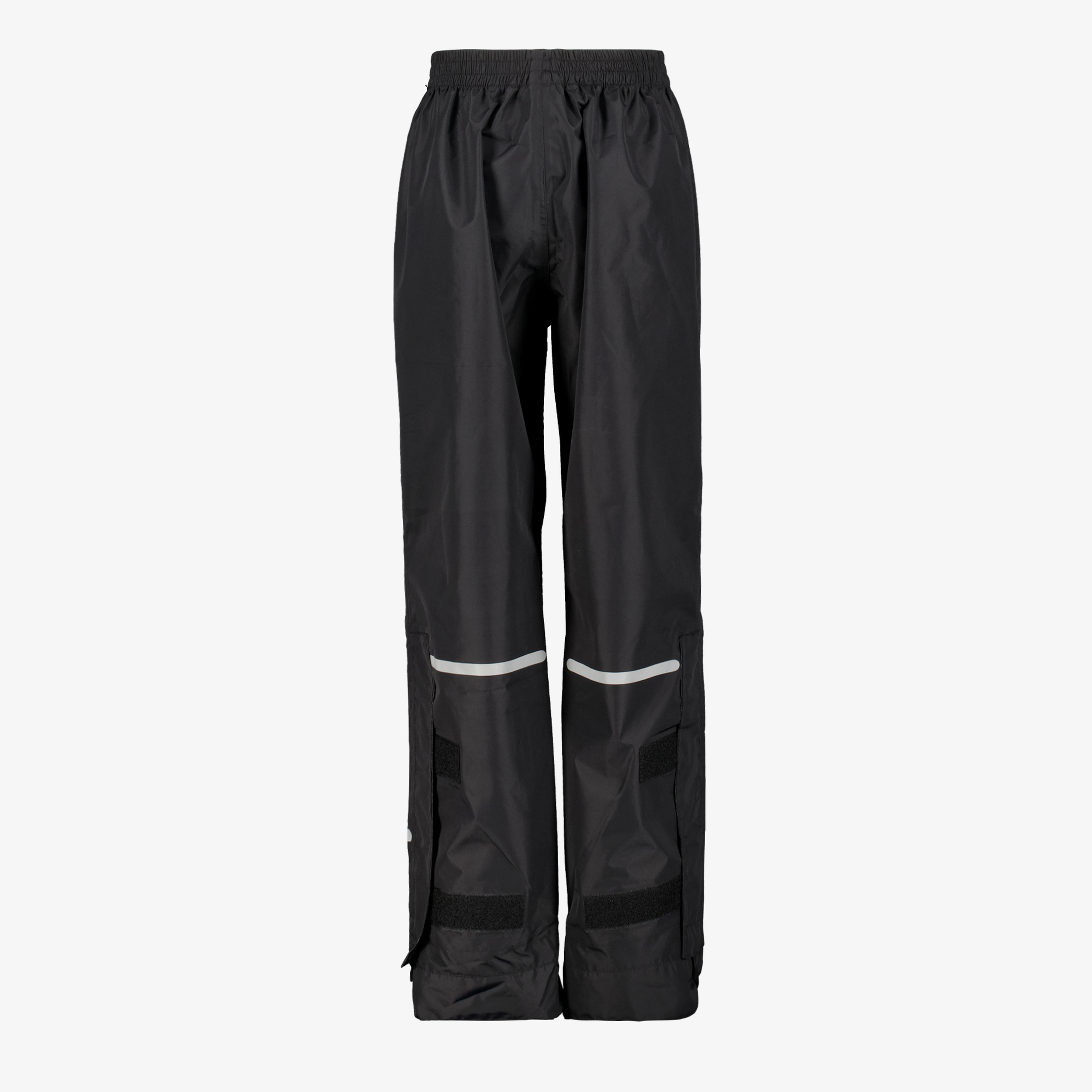 Zwarte regenbroek voor kids uit de Mountain Peak collectie. Voorzien van een elastische tailleband en reflecterende accenten op de benen zodat je goed opvalt in het verkeer. De regenbroek heeft voeten zodat de broek goed blijft zitten en je volledig droogt blijft. Gemaakt van polyester.