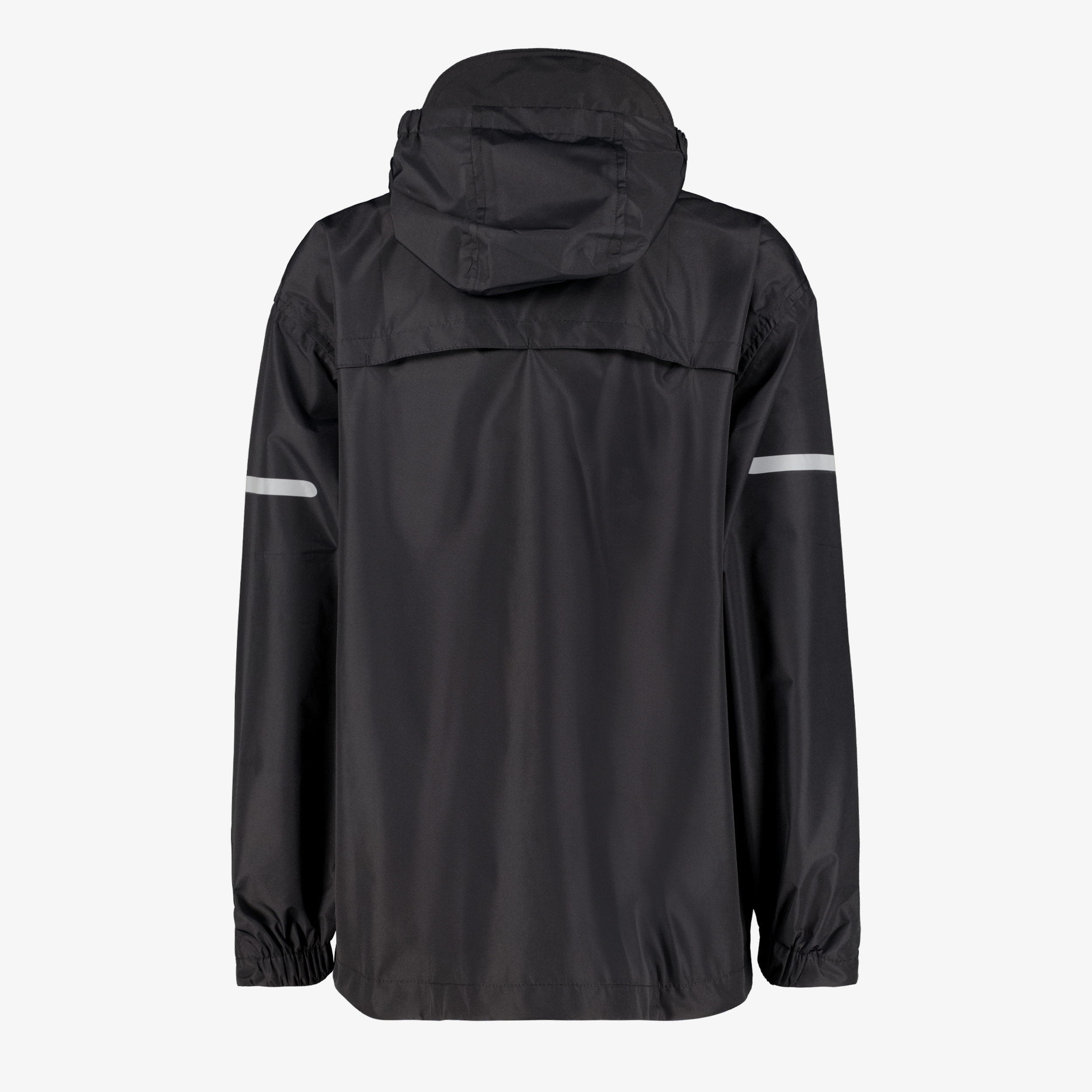 Zwarte regenjas voor kids van Mountain Peak. Voorzien van een waterdichte ritssluiting en capuchon met klep zodat je gezicht goed droog blijft. De regenjas is gemaakt van 100% polyester.