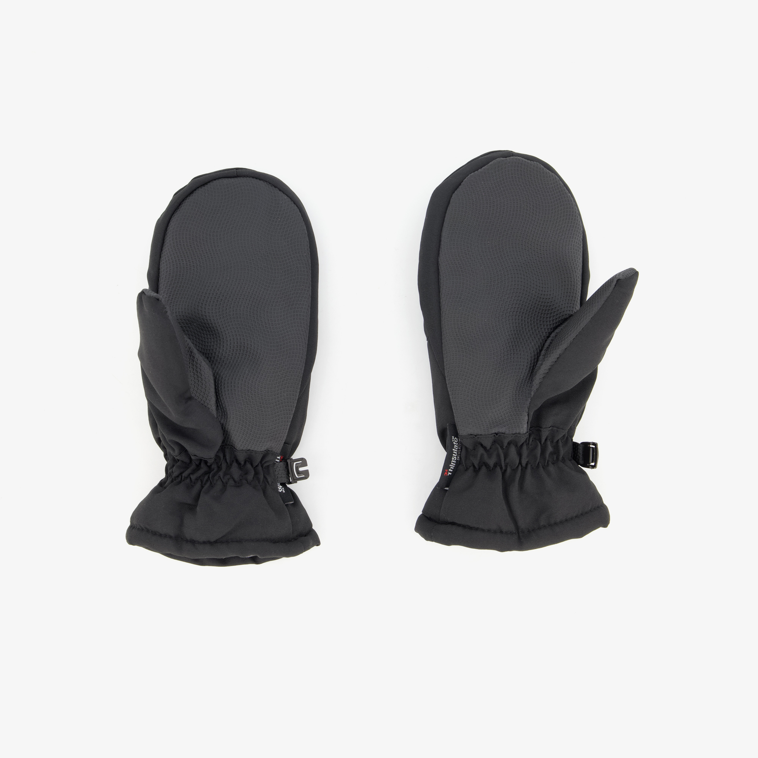 Zwarte skiwanten voor kinderen van Mountain Peak. Voorzien van elastiek rond de polsen zodat ze goed aansluiten en bescherming bieden tegen kou. Op de handpalmen en vingers is ruw materiaal aangebracht voor extra versteviging en grip. De skiwanten hebben een zachte, warme Thinsulate voering die ademend, warmte isolerend en vochtwerend is. Met het handige haakje bewaar je de wanten makkelijk bij elkaar. Gemaakt van polyester en katoen.