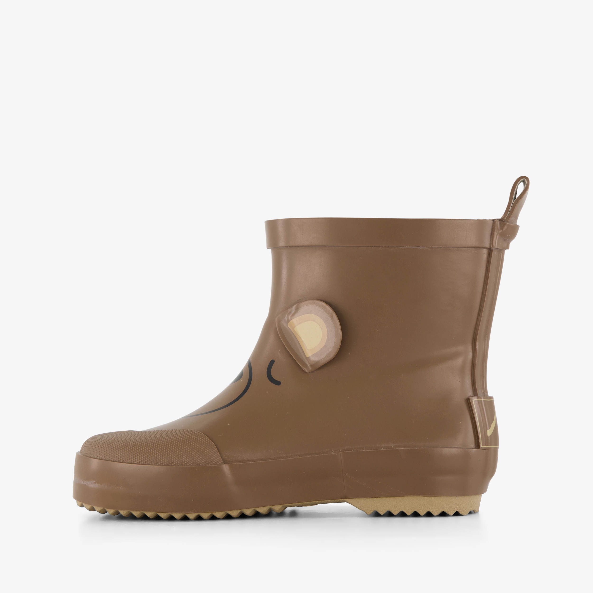 Korte, bruine kinder regenlaarzen van Mountain Peak. Deze regenlaarsjes zijn waterbestendig en zijn voorzien van een aantreklusje op de schacht voor een makkelijke instap. Gemaakt van PVC met een binnenwerk en binnenzool van textiel. Deze is uitneembaar. De schattige regenlaarzen hebben beren oortjes en een opdruk aan de voorzijde.