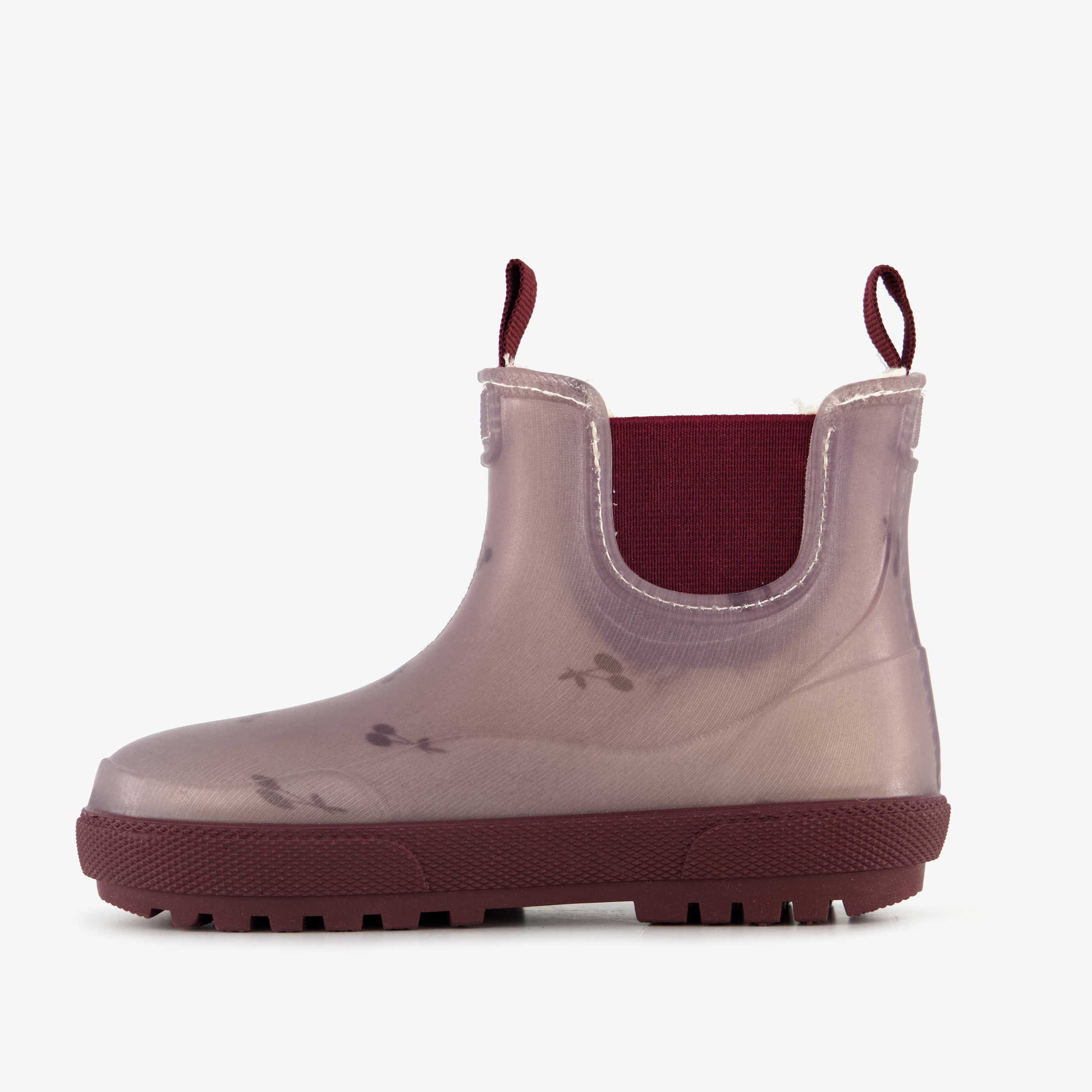 Roze regenlaarzen met kersjes van Mountain Peak. Deze heerlijk warme regenlaarzen zijn volledig gevoerd, wat ervoor zorgt dat de voetjes van je kleintje ook bij kouder weer warm blijven. De laarsjes zijn voorzien van twee aantreklusjes op de schacht en een elastische inzet aan de zijkant. Gemaakt van SEBS; een modern alternatief voor PVC en/of rubber en combineert de voordelen van beide materialen: soepel als rubber, maar licht en onderhoudsvriendelijk als PVC.