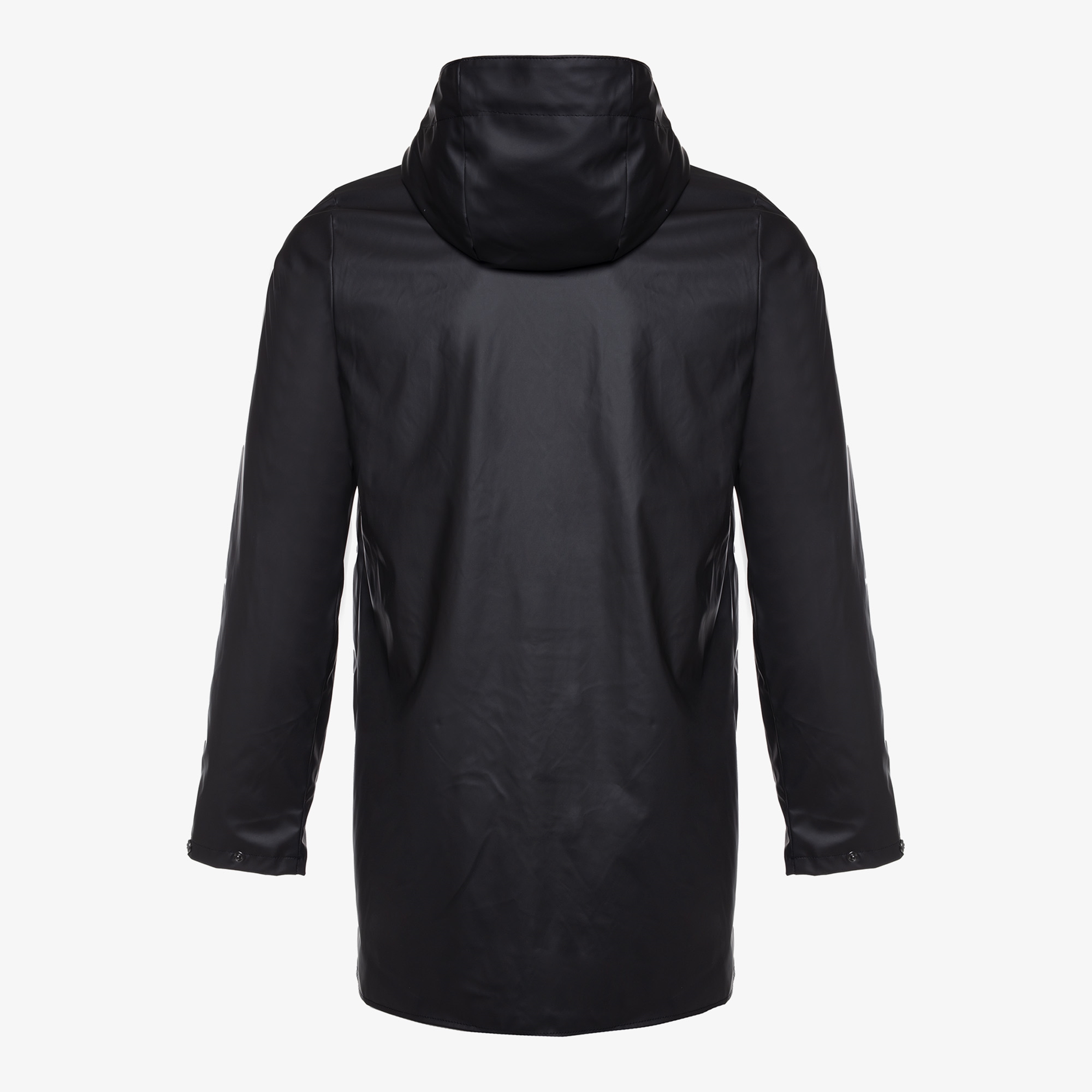 Lange, zwarte regenjas voor heren uit de Mountain Peak collectie. Voorzien van een waterdichte rits met overlappende drukknopen en kinbeschermer, een hoge kraag met vaste capuchon en aantrekkoordjes en twee klepzakken met drukknopen. De regenparka heeft een binnenzakje voor je mobiel en een extra zachte voering. De stof heeft een waterkolom van 1,500 MM . De winddichte regenparka is gemaakt van 100% polyester.