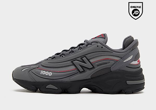 Bold. Back from ’99. Only at JD. New Balance has refreshed the archives with these men’s 1000 sneakers. Landing in a Grey and Red colourway, these tech-inspired trainers have a layered mesh and synthetic upper that’s streamlined and structured. Underfoot, ABZORB cushioning is split to the heel and forefoot by a Stability Web shank in the middle. Finished off with a grippy rubber outsole, the signature ‘N’ logo and 1000 branding.. Material: Textile & Synthetic Upper/Synthetic Sole