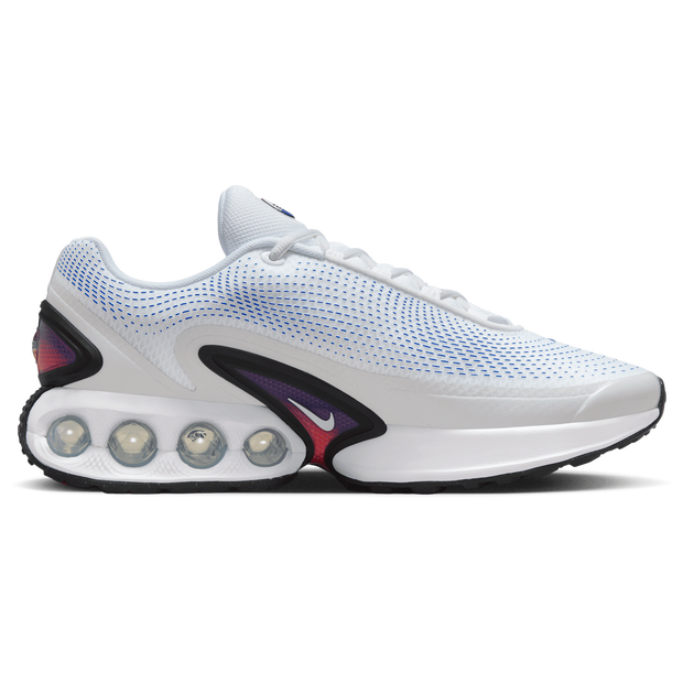 Het comfort van de toekomst loopt over van stijl Stel je voor dat je met elke stap de toekomst tegemoet treedt. Dat is precies waar het bij de Nike Air Max Dn allemaal om draait. Met het Dynamic Air-unitsysteem voelt elke bouncy stap alsof je op wolkjes loopt. Het tweevoudige druksysteem is stevig in de hiel en zacht in het midden van de voet, waardoor het een soepele overgang creëert en lopen voelt als dansen. Het bovenwerk met meerdere lagen mesh, met zijn voelbare print en getextureerde look, is net zo licht en ademend als stijlvol. Het dempingssysteem is omgeven door zacht schuim, voor een comfortabel, zacht en ondersteunend gevoel. De energie die je krijgt van de Nike Air Max Dn voelt eindeloos. Kenmerken van de Nike Air Max Dn: * Bovenwerk van meerdere lagen mesh * Zacht schuim rondom het dempingssysteem * Dynamic Air-unit met tweevoudig druksysteem * Voelbare print * Tussenzool van schuim * Rubberen buitenzool * Minimaal 20% gerecycled materiaal op basis van gewicht