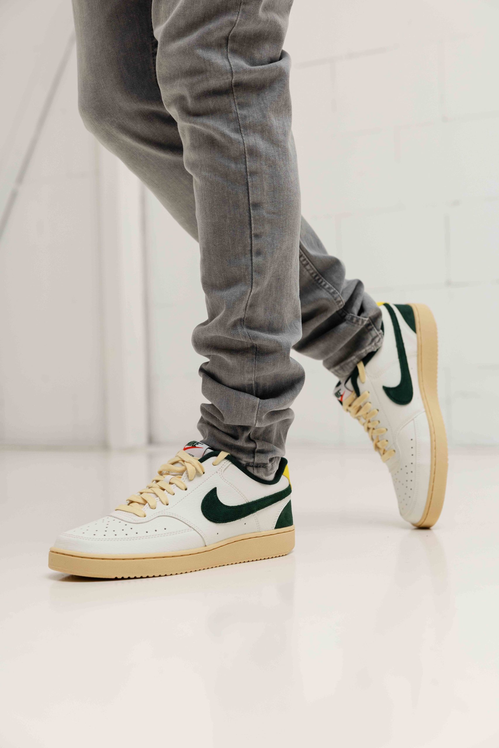 De Nike Court Vision Low Sneakers voor heren zijn een tijdloze toevoeging aan je sneakercollectie. Deze sneakers zijn onderdeel van de Never out of stock collectie van Nike en zijn perfect voor mannen die op zoek zijn naar comfort en stijl. De sneakers hebben een normale pasvorm en zijn voorzien van een vetersluiting voor een perfecte pasvorm. De combinatie van wit, geel en groen zorgt voor een frisse en sportieve uitstraling. Met deze Nike Court Vision Low Sneakers ben je helemaal klaar voor elke gelegenheid.