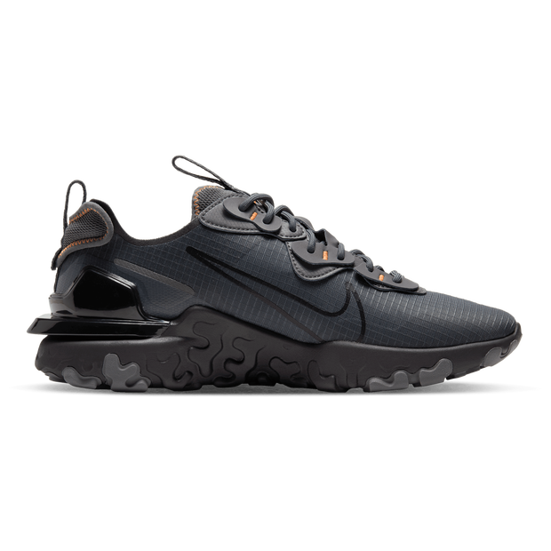 Gelaagde texturen en speelse vormen komen samen in de Nike React Vision voor een design dat is beïnvloed door de overdreven wereld van onze dromen. Nike React foam en de gewatteerde tong bieden droomachtige demping voor al je echte en denkbeeldige avonturen. Pluspunten: Het lipje aan de tong verwijst naar Dimension Six, een voorloper voor onze bedrijfsnaam totdat een levendige droom over de godin van de overwinning, Nike, deze verving. De langere stijl en de esthetiek met meerdere texturen zorgen voor een onvergetelijke uitstraling. Een middenzool met Nike React foam en een zachte buitenzool van rubber bieden ongelooflijk comfort van hak tot teen. De superzachte tong biedt extra demping. De plastic hielclip houdt de hak stevig op zijn plaats en zorgt voor structuur en balans. Productgegevens: Reflecterende designdetails. Niet bedoeld als beschermende gear (PPE) D/MS/X: Dimension Six haalde het niet toen de hoge heren van OG een andere naam moesten bedenken voor Blue Ribbon Sports,