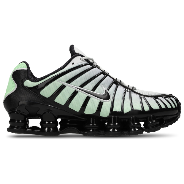 De Nike Shox TL tilt mechanische demping naar een hoger niveau. De schoen is een vernieuwde versie van het icoon uit 2003, met ventilerende mesh in het bovenwerk en Nike Shox technologie over de hele lengte van de schoen voor optimale schokbescherming en een opvallende look. Pluspunten: Nike Shox technologie combineert veerkrachtige, flexibele zuilen met optimalisatieplaten voor uitstekende demping die comprimeert en weer terugveert in zijn oorspronkelijke vorm. Het combinatiebovenwerk met een volledige TPU-kooi is een vrijwel exacte replica van de Nike Shox TL uit 2003. Voorgevormde overlays over de middenvoet bieden ondersteuning en een aansluitende pasvorm. Een TPU-plaat in de hak, tussen de middenzool en Nike Shox technologie, biedt stabiliteit en ondersteuning. Een lichte middenzool van foam biedt demping. Het stevige rubber met een aangepast wafelpatroon geeft niet af en zorgt voor uitstekende grip en duurzaamheid. Productgegevens: Bovenwerk van synthetisch materiaal en textiel