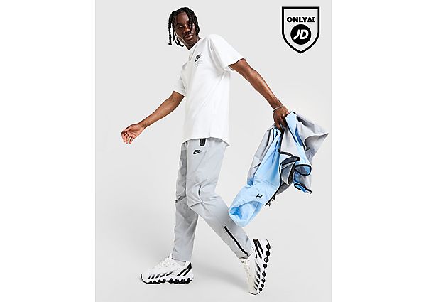 Ga de straat op in deze Tech Woven trainingsbroek voor heren van Nike. Deze exclusieve JD-trainingsbroek in de kleur Wolf Grey is gemaakt van een lichtgewicht, zweetafvoerend materiaal voor koel comfort. Hij heeft een elastische tailleband met een elastisch trekkoord en ritsen bij de enkels om de pasvorm aan te passen, en ritszakken om je essentials in op te bergen. Afgewerkt met het kenmerkende Futura-logo op de dij. Machinewasbaar. | Ons model draagt maat M.. Material: 100% polyester
