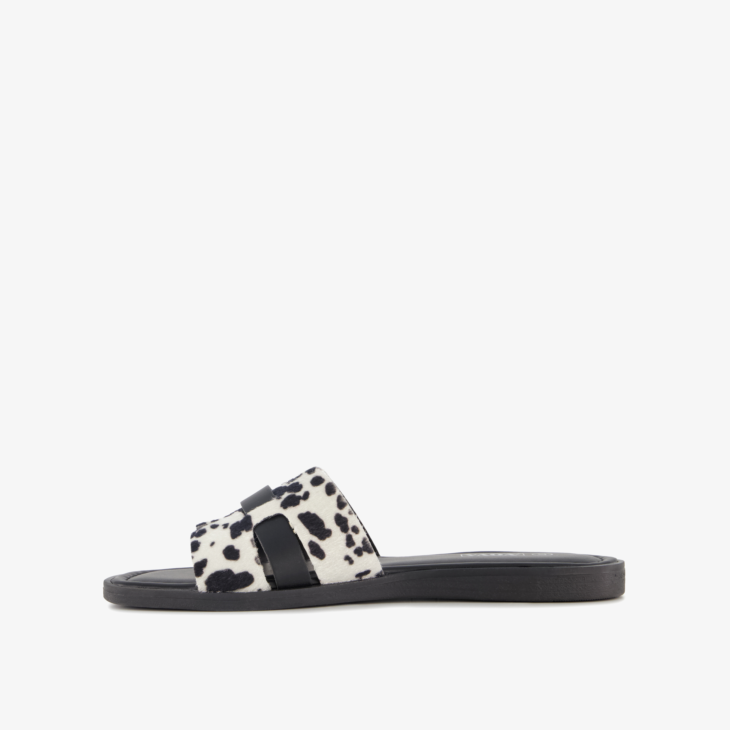 Dé trend van nu: slippers met cow print van Nova. Gemaakt van imitatieleer en textiel, een binnenwerk van textiel en een rubberen zool. De slippers hebben een brede wreefband met harige koeienprint en een comfortabel voetbed van imitatieleer.