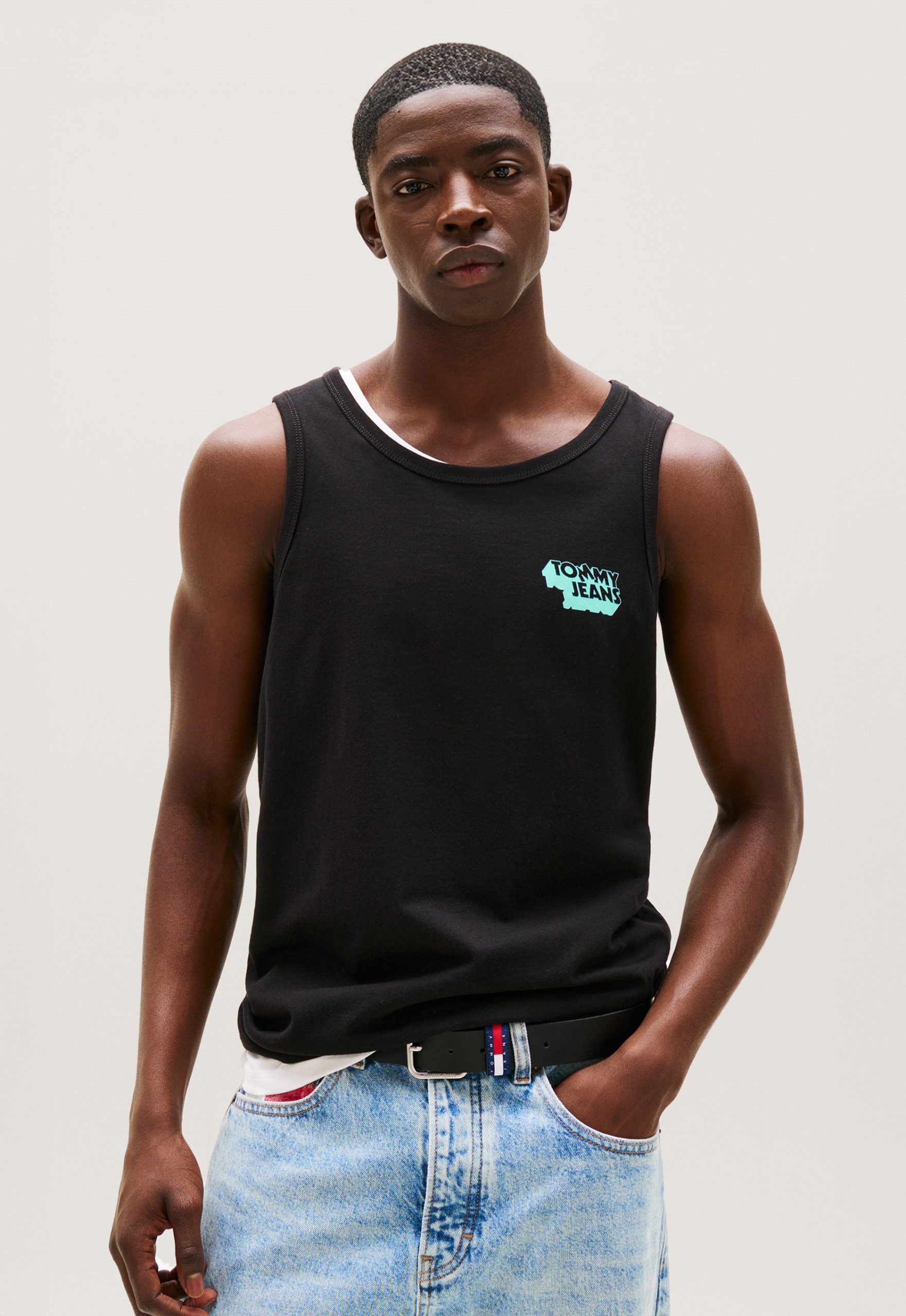 Dit is de DM0DM21783 Slim Stack Tanktop van het merk Tommy Jeans. De tanktop heeft een ronde hals en is mouwloos met ribboord afwerkingen. Op de borst zit een Tommy Jeans logo print.