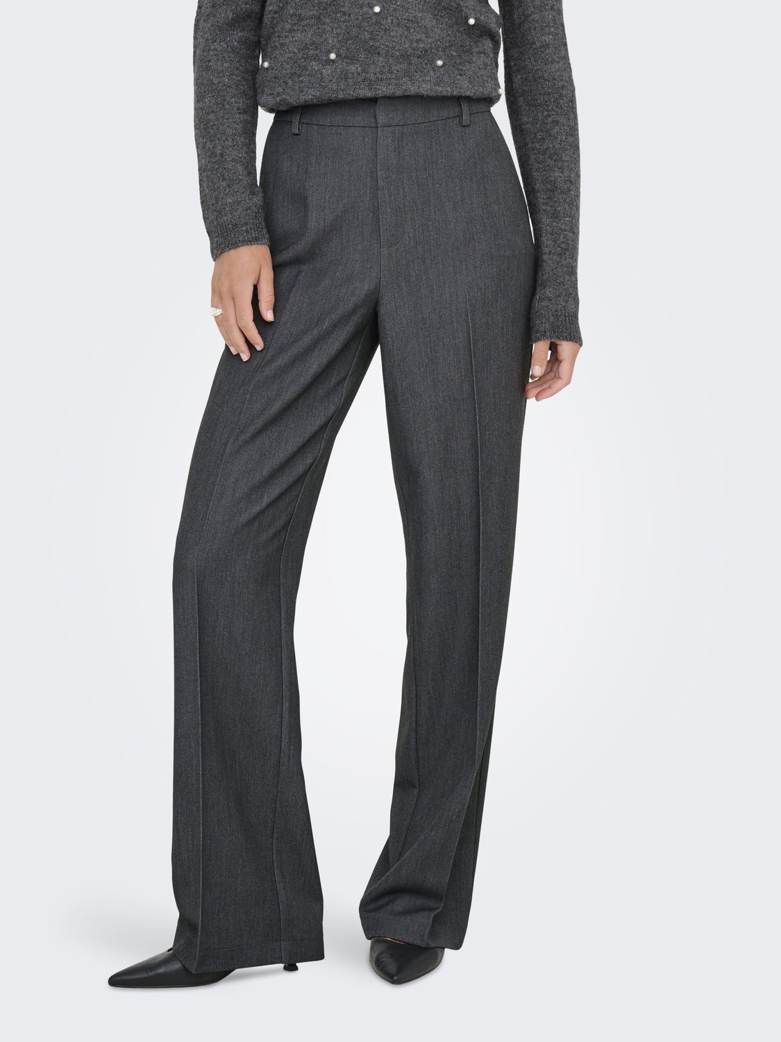 Only Onlhattie-lana Hw W Mel Pant Tlr Noos Broek Dark Grey Melange