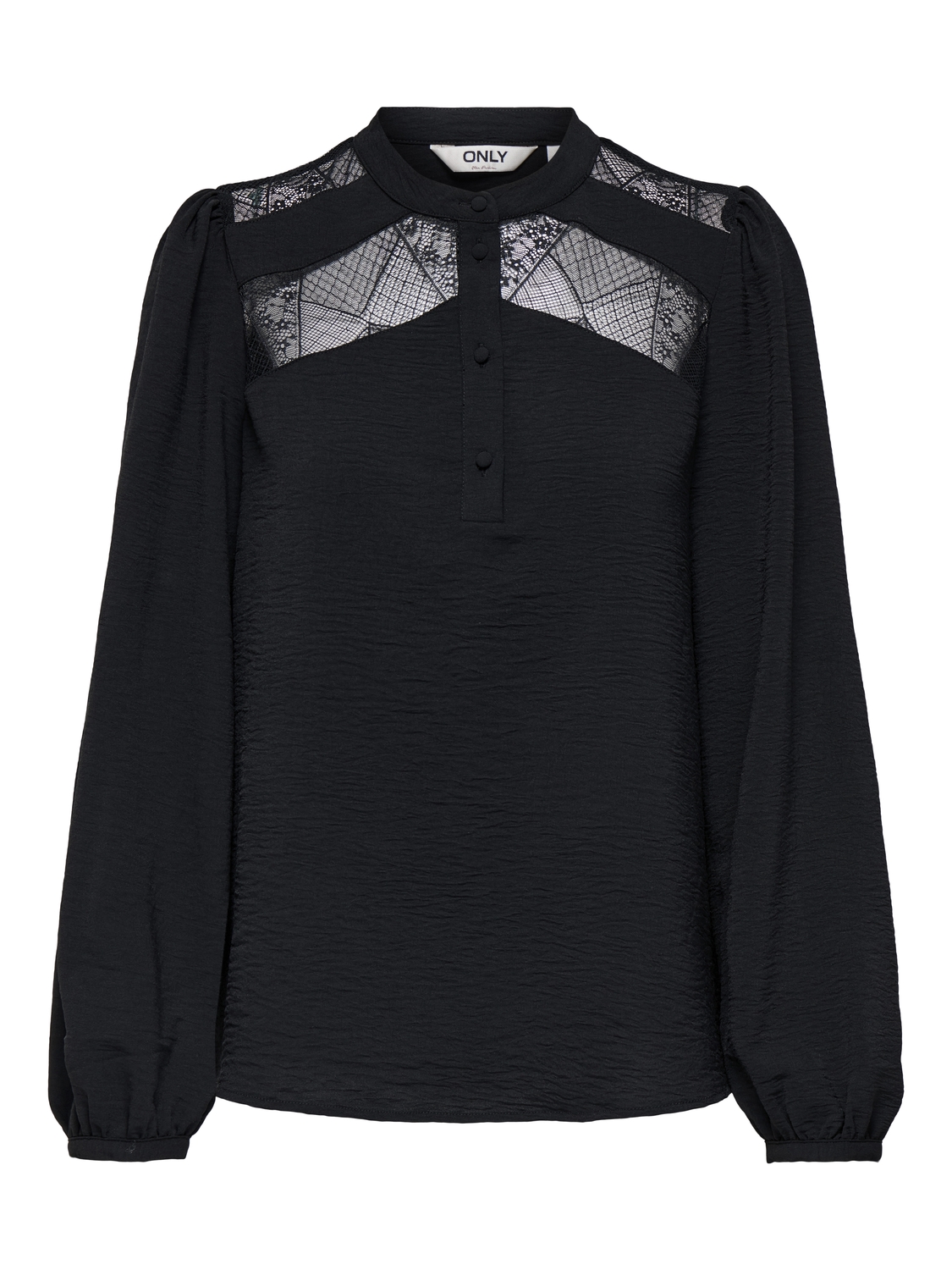 Only Onlyohanna Life Fr L/s Lace Top Wvn Cs T-shirt Lange Mouw Black