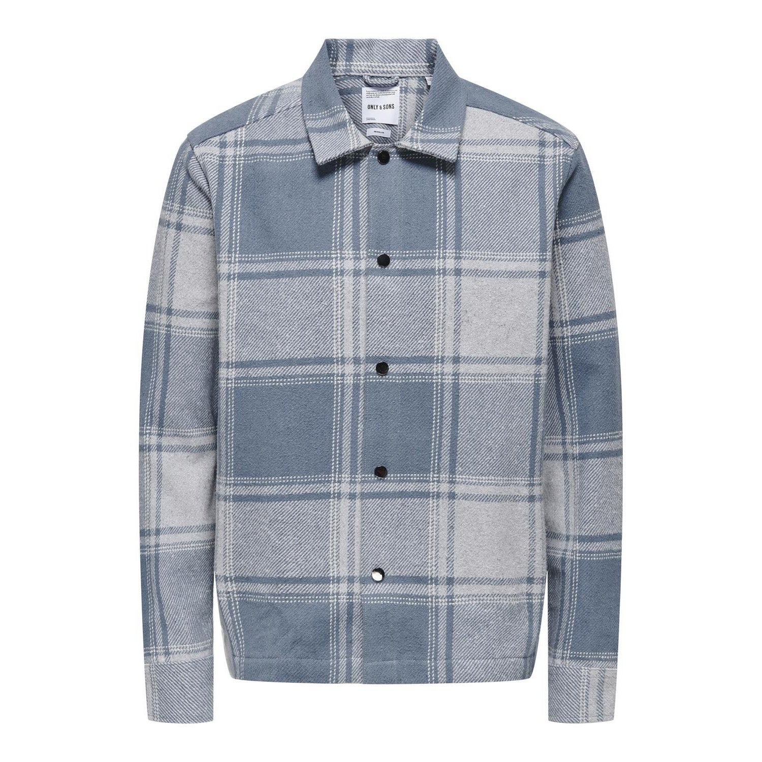 De Mace Long Sleeve Check Overshirt van ONLY&Sons: een essentieel herenoverhemd met polokraag, lange mouwen en een klassieke knoopsluiting. Strakke pasvorm voor een tijdloze uitstraling.
