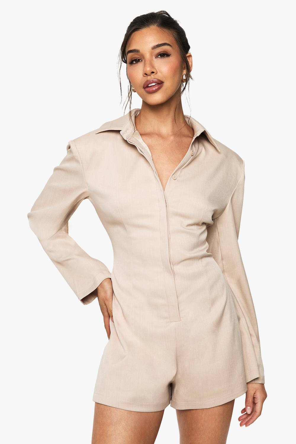 Op maat gemaakte blazer playsuit – Verfijnde op maat gemaakte blazer playsuit met gestructureerde schouders voor een scherp silhouet Klassieke kraaglijn met knoopdetail aan de voorkant Flatteus getailleerd ontwerp dat je figuur accentueert Lange mouwen met subtiele gestructureerde manchetten voor een elegante afwerking Korte snit die je benen laat zien voor een zelfverzekerde avondlook Maak een opvallende entree in deze op maat gemaakte blazer playsuit die op briljante wijze verfijning en hedendaagse stijl combineert. Het gestructureerde ontwerp creëert een verfijnd silhouet, terwijl de korte lengte een speelse draai geeft aan traditionele maatkleding. Perfect voor een avondje uit; combineer met sandalen met bandjes en een compacte clutch zoals getoond, voor een verzorgd ensemble dat de aandacht trekt. Het veelzijdige ontwerp past zich moeiteloos aan, van drankjes met vriendinnen tot clubavonden – wissel eenvoudig je accessoires om bij de sfeer te passen. Voor koelere avonden, combineer met een cropped jack of voeg opvallende sieraden toe om je look verder te personaliseren. Dit Boohoo-item biedt de perfecte balans tussen chique professionaliteit en de aantrekkingskracht van de nacht, zodat je op je volgende avondje uit om alle juiste redenen opvalt.