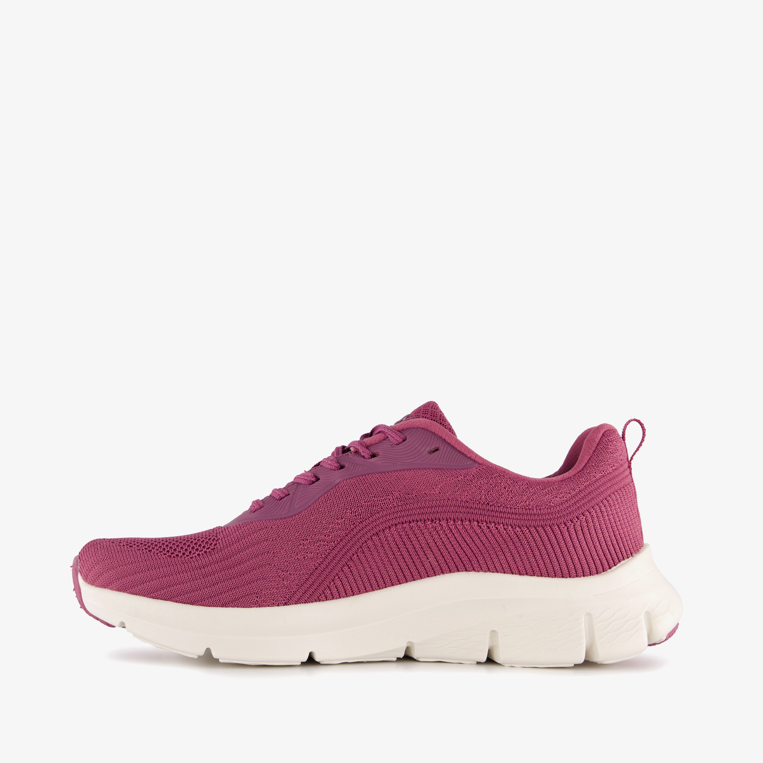 Roze fitnessschoenen voor dames van Osaga. Het buiten- en binnenwerk zijn gemaakt van textiel en de dikke buitenzool met profiel van rubber. Voorzien van een vetersluiting en hiellusjes voor een goede pasvorm en een makkelijke instap. Het comfortabele voetbed van textiel is uitneembaar zodat je eventueel jouw eigen zolen in de schoenen kan dragen.