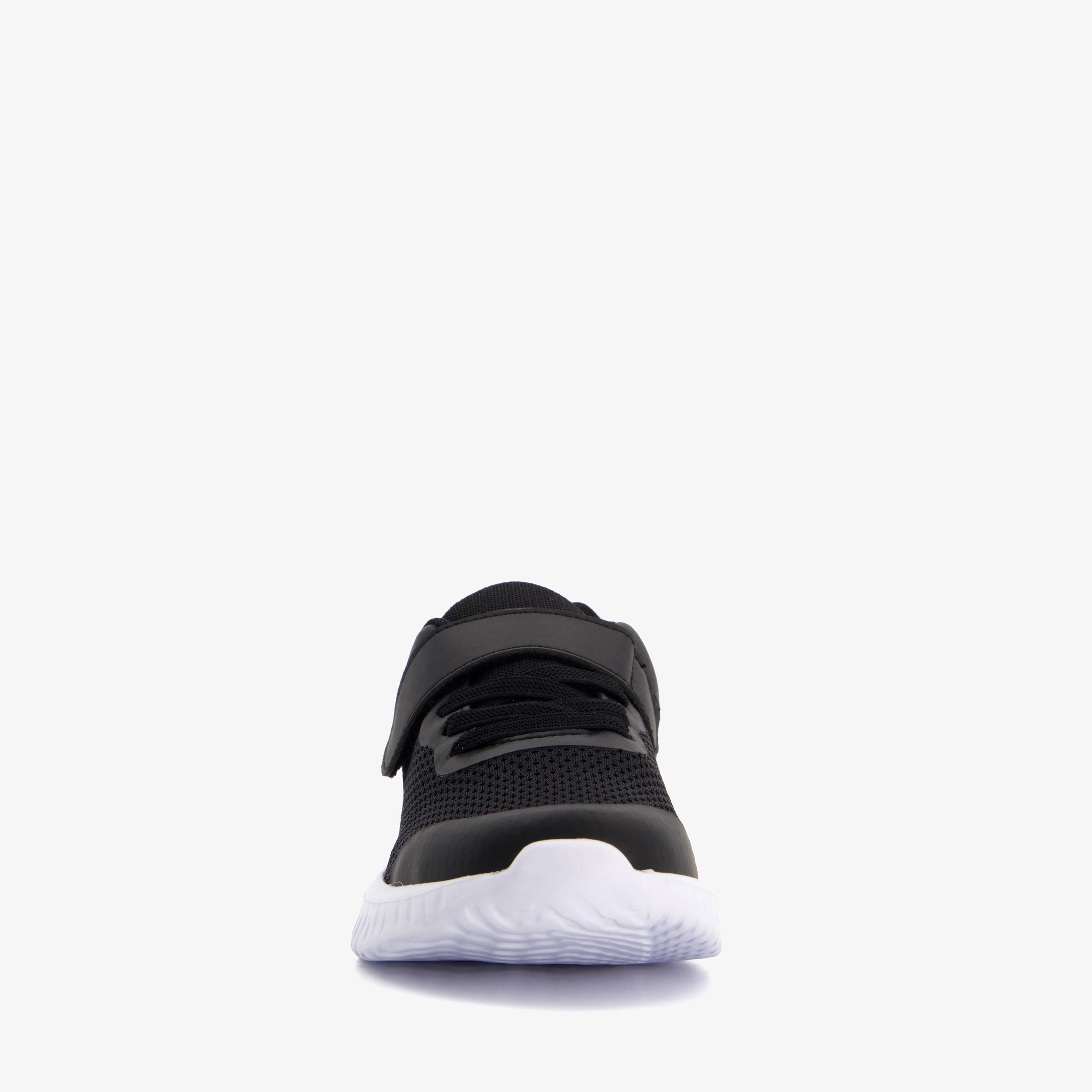 Zwarte Osaga Play sneakers voor kinderen. Het buitenwerk is gemaakt van mesh en imitatieleer, het binnenwerk van textiel en de stevige profielzool van rubber. Voorzien van elastische veters en een klittenband voor een goede pasvorm en hiellusjes voor een makkelijke instap. Het comfortabele voetbed van textiel is uitneembaar zodat je eventueel jouw eigen zolen in de schoenen kan dragen. Deze gave sportschoenen hebben een opvallende witte zool en oranje vlakjes op de hakken.