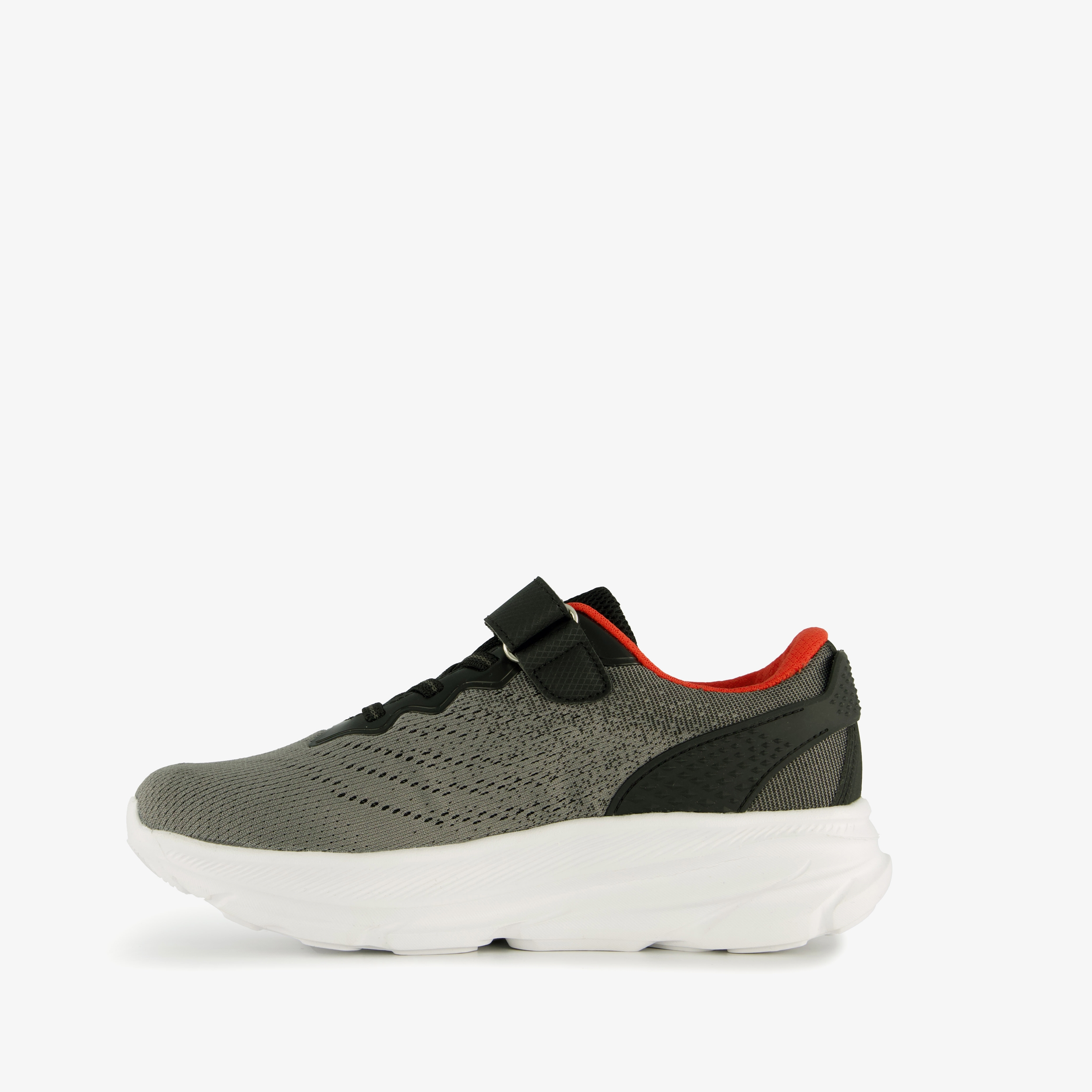 Grijze sportschoenen voor kids. Gemaakt van mesh, een binnenwerk van textiel en een flexibele zool. De sportschoenen hebben elastische veters met klittenbandsluiting en een vast voetbed van textiel. Het bovenwerk is gemaakt van ademend mesh.