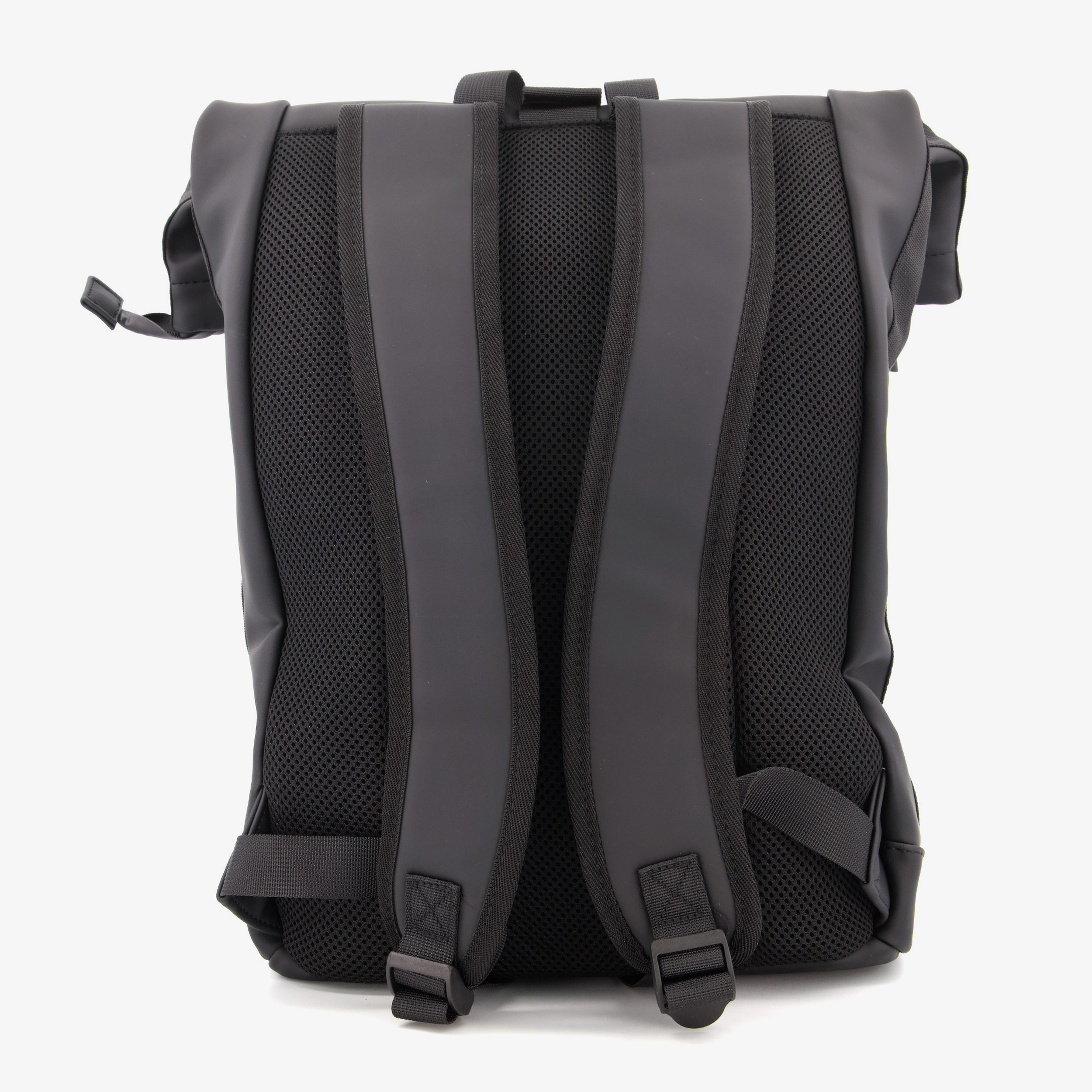 Zwarte opvouwbare rugzak van Osaga. Deze rugzak is gemaakt van waterdicht materiaal en heeft een groot vak dat afsluitbaar is met een rits. Aan de voorzijde bevindt zich een extra vakje met rits. De schouderbanden zijn gewatteerd en verstelbaar, zodat je de tas goed kunt laten aansluiten. De bovenzijde van de rugzak is op te rollen en vast te klikken met een kliksluiting. De afmetingen zijn 42 x 28 x 12 cm. De tas is gemaakt van PU-leer. De inhoud van de tas is 14 liter.