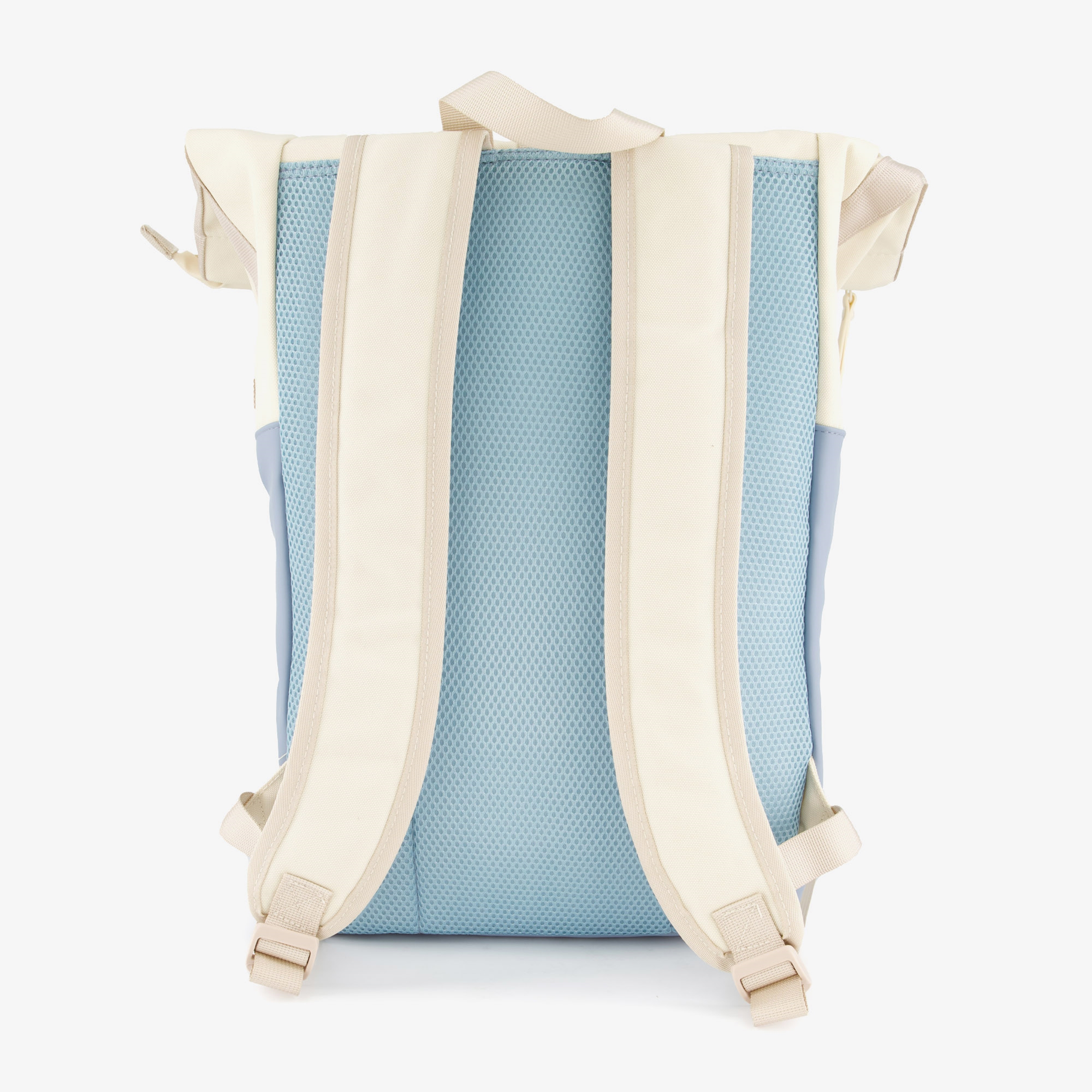 Lichtblauwe opvouwbare rugzak van Osaga. De tas is gemaakt van waterdicht materiaal en is voorzien van een groot vak die afsluitbaar is met een rits. Aan de voorzijde is de rugzak voorzien van een extra vakje met rits. De schouderbanden zijn gewatteerd en verstelbaar zodat je de tas goed kan laten aansluiten. De bovenzijde van de rugzak is om te rollen en vast te klikken door middel van een kliksluiting. De afmetingen van de tas opgerold zijn: 15 x 35 x 40 cm. De tas is gemaakt van gedeeltelijk waterdicht materiaal en textiel. De inhoud van de tas opgerold is 16 liter en uitgerold is dit 20 liter.