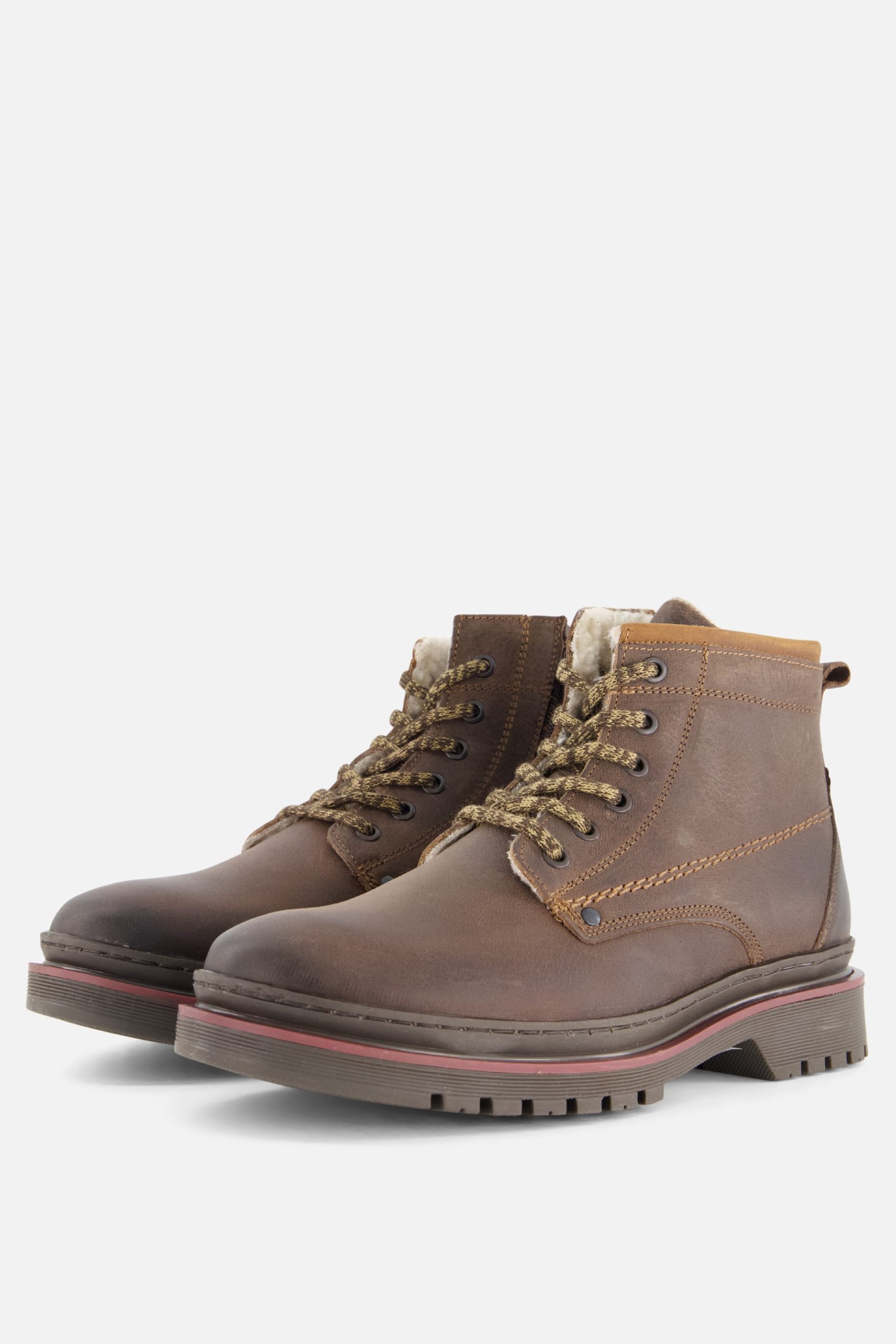 Deze Outfielder veterschoenen in de kleur bruin zijn gemaakt van leer. De voering en comfortabele binnenzool zijn van imitatiebont. De zool is gemaakt van rubber en heeft een dikte van 1 centimeter.