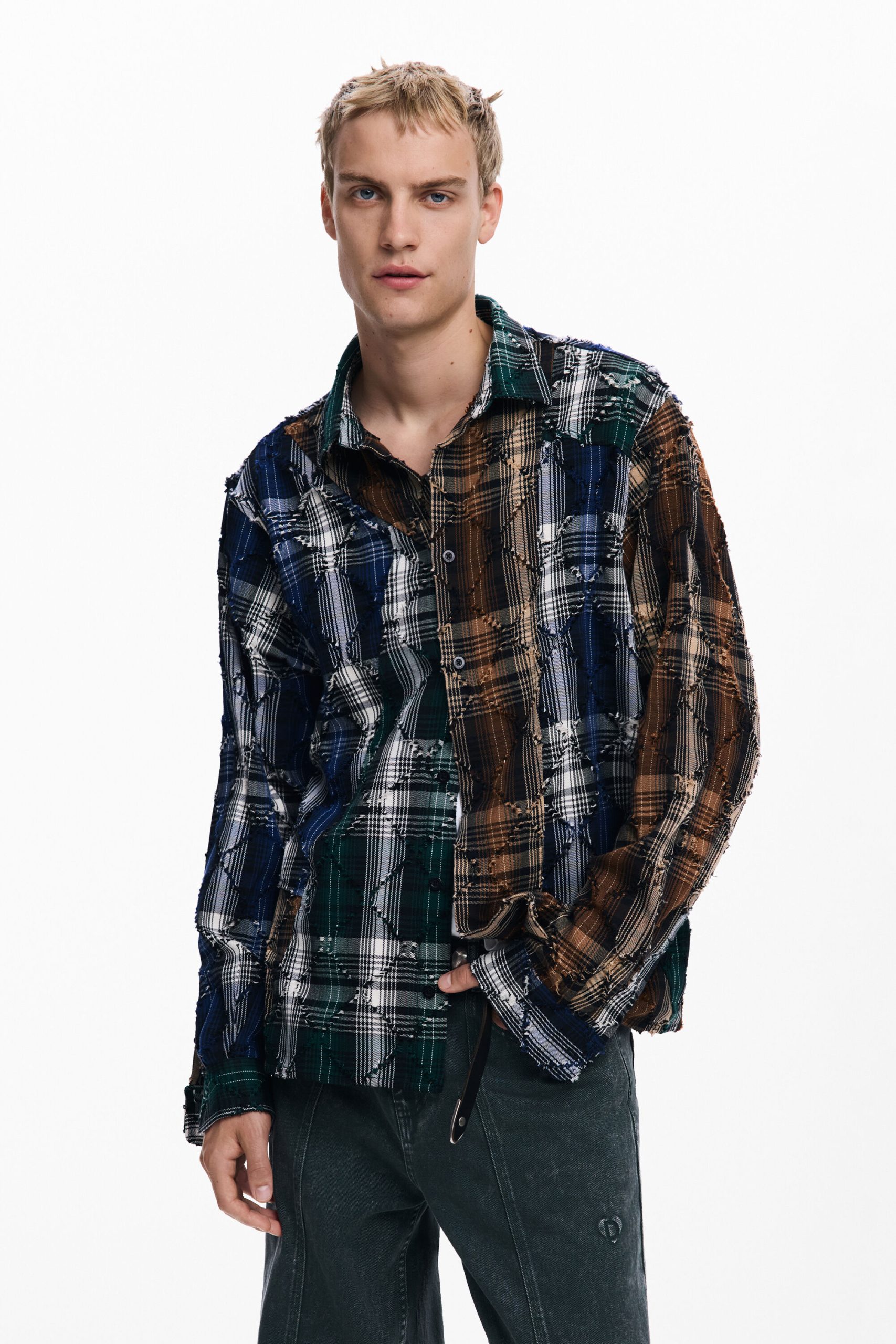 Regular fit overhemd met strepen en ruiten in verschillende tinten, geborduurde details en een rafelige afwerking