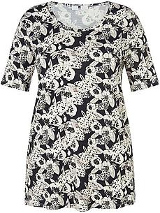 Shirt met ronde hals van ANNA AURA met 1/2 mouwen. Zacht, elegant en zomers, gemaakt van hoogwaardige jersey van 96% viscose, 4% elastaan met een bloemenprint die elk shirt uniek maakt. Lengte in maat 42 ca. 68 cm. Dit shirt met ronde hals is machinewasbaar. fijnwas tot 30°. chloorbleken niet mogelijk. koud strijken. chemische reiniging. drogen in de droger niet mogelijk. 40, 42, 44, 46, 52