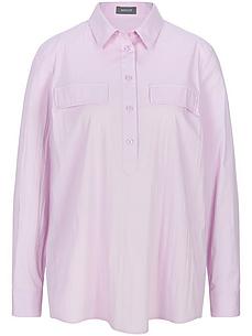 Overhemdblouse van BASLER. Helemaal trendy in een casual, vrouwelijke look met manchetten met 2 knopen op de 1/1 mouw, doorlopende knoopsluiting en nep-klepzakken op de borst. Met brede plooien in de verlengde, licht afgeronde rug. Met licht kreukeffect van 66% katoen, 32% polyamide, 2% elastaan. Lengte ca. 72 cm. Deze overhemdblouse is machinewasbaar. fijnwas tot 30°. chloorbleken niet mogelijk. warm strijken. chemische reiniging. drogen in de droger niet mogelijk. 36, 38, 40, 42