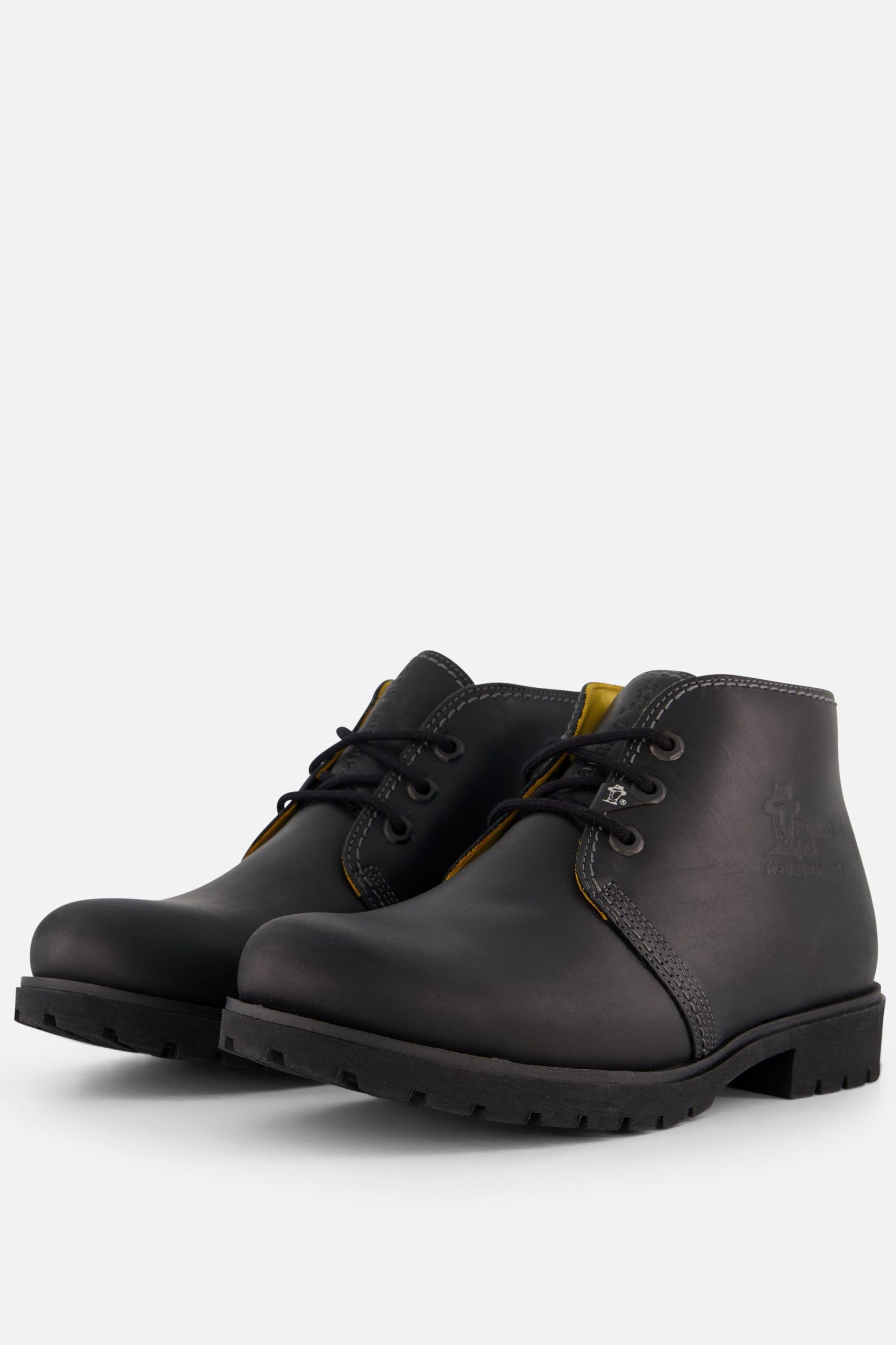 Zwarte Panama Jack Bota Classic Mid veterschoenen gemaakt van gevet nappaleer. De voering en binnenzool zijn gemaakt van leer. Ter decoratie zijn er stiksels en merkopdrukken aangebracht. De veterschoenen hebben een stevige rubberen profielzool met een dikte van 2 centimeter. Door middel van veters kun je de schoen sluiten. Het voetbed van de zwarte Panama Jack Bota Classic Mid is uitneembaar!
