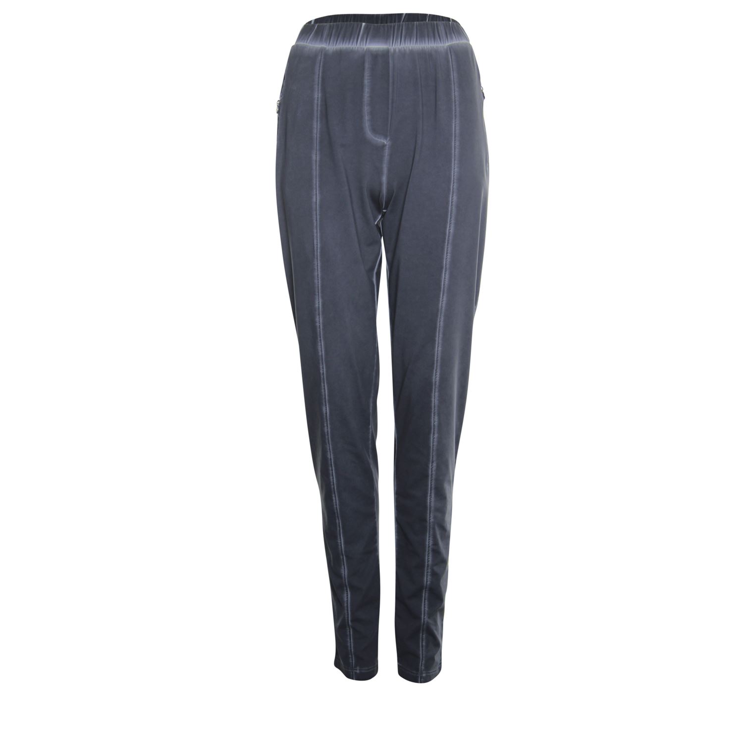 Gewassen broek in een comfortabele travel kwaliteit. De broek is voorzien van een elastische tailleband, zakken met een rits en een nep zakje op de achterkant.