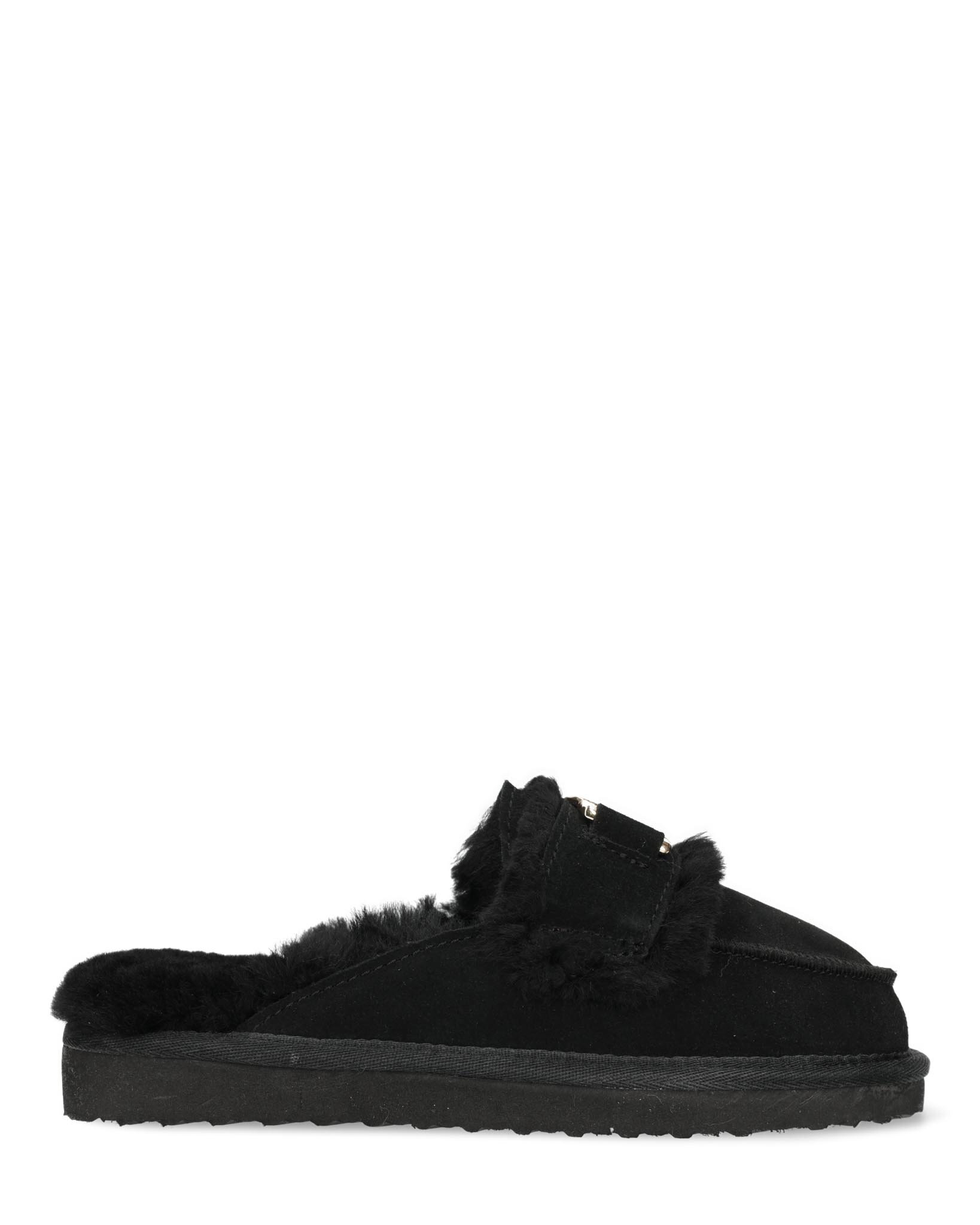 Zwarte Kever pantoffel voor dames van Mexx. Gemakkelijk instap-model, heerlijk zacht en warm. Gevoerd met Decoratieve gouden details zoals het Mexx logo op de voorvoet. Ideaal voor de koude dagen. Spuit de pantoffels regelmatig in tegen water en vuil om er lang plezier van te hebben!