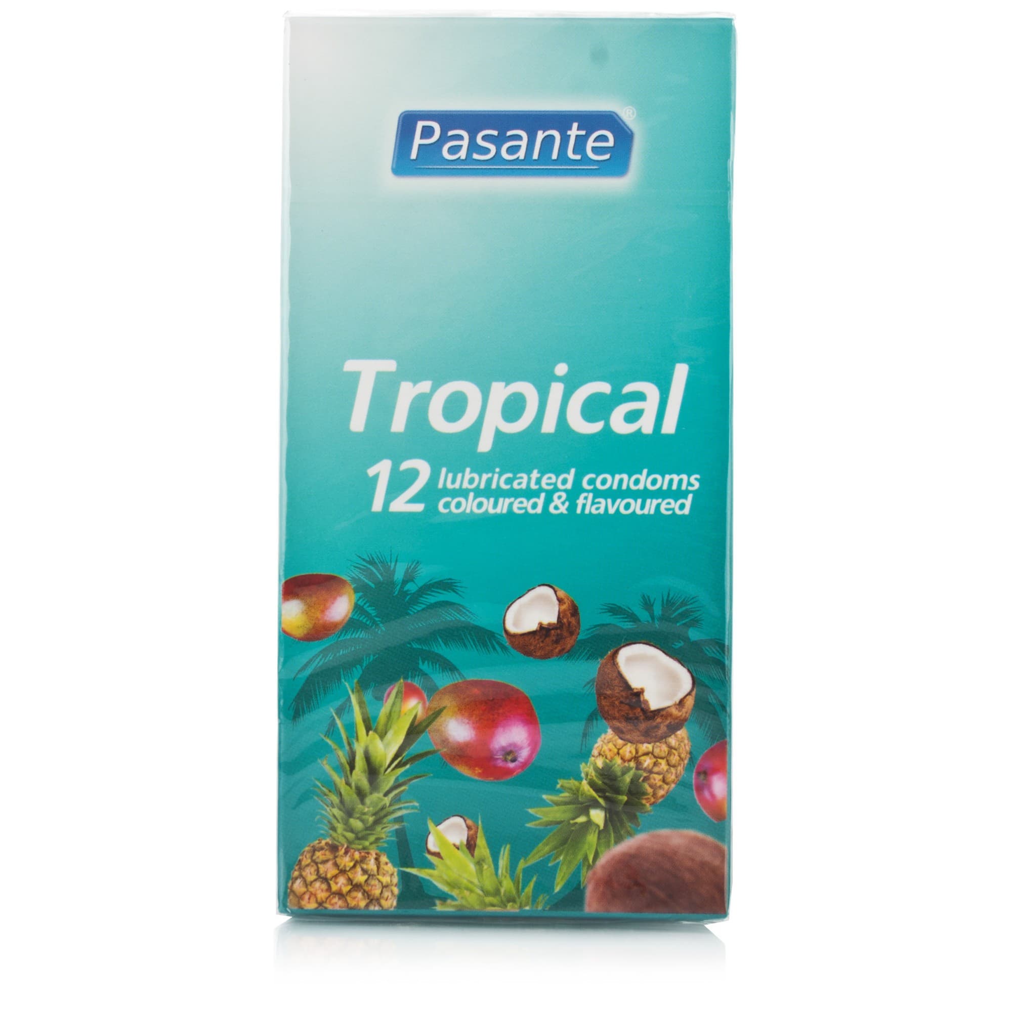Breng zomerse sferen tussen je lakens en verbeter je seksspel met Pasante Tropical Condoms. Smaakvol en gekleurd, ze zijn geïnspireerd op verfrissende zomerdrankjes en zijn perfect voor iedereen die van tropische geuren en smaken wil genieten. Elke Pasante Tropical Condoms-verpakking bevat een assortiment gearomatiseerde condooms: * Kokosnoot * Mango * Ananas Combineer ze met zomerse muziek aan het zwembad om een vakantie-achtige sfeer in de slaapkamer te creëren. Pasante Tropical Condooms zijn geschikt voor stellen die hun fantasieën tot leven willen brengen, of voor stellen die het voorspel en het veilig vrijen willen verbeteren. Elk condoom in de selectie is gemaakt van natuurlijk rubberlatex en heeft een plezierige hoeveelheid glijmiddel om wrijving te verminderen en irritatie te voorkomen. Deze condooms zijn door hun zoete geur en smaak meer dan geschikt voor orale seks. Met een nominale breedte van 53 mm en een lengte van 190 mm zijn ze ideaal voor mannen die een normaal condoom nodig hebben. Een comfortabele, anatomische pasvorm zorgt voor een natuurlijke bewegingsvrijheid en verbetert de sensaties voor beide partners. Pasante Tropical Condooms hebben een gladde, zijdeachtige textuur en voelen verbazingwekkend zacht aan – perfect voor mensen met een gevoelige huid. Alle Pasante condooms zijn elektronisch getest op veiligheid en overtreffen de Europese normen. Ze zijn gemarkeerd met CE-keurmerk.