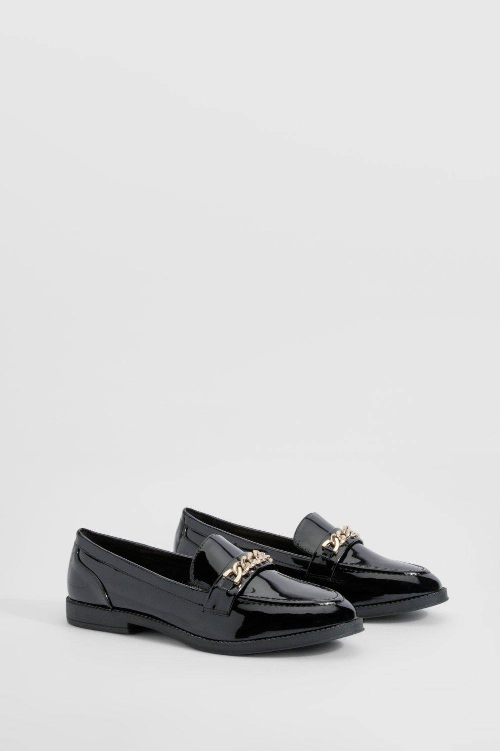 Home » Dames » Schoenen » Instappers » Patent Loafers Met Brede Pasvorm En Kettingversiering, Black