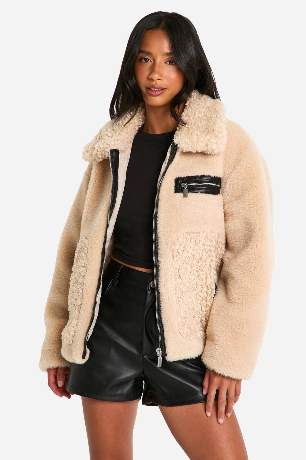 Home » Dames » Jassen » Winterjassen » Petite Teddy Mixed Nepbont Aviator, Sand