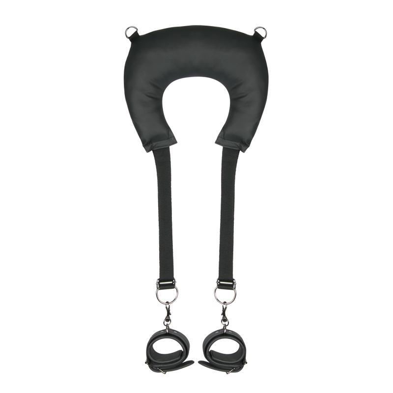 Maak je seksspelletjes nog spannender met deze praktische seks sling. Hij houdt je benen uit elkaar en zorgt tegelijkertijd voor comfort en ondersteuning van je lichaam. Om hem te gebruiken doe je de boeien om je enkels en het kussen om je nek. De bandjes zijn verstelbaar van 12 tot 150 centimeter en de boeien kunnen worden versteld van 13 tot 30 centimeter. Dit zorgt voor een perfecte pasvorm en daardoor een comfortabel gebruik. De boeien zijn gemaakt van sterk kunstleer en zijn gevoerd met schuimrubber dat schrammen op de huid voorkomt.
