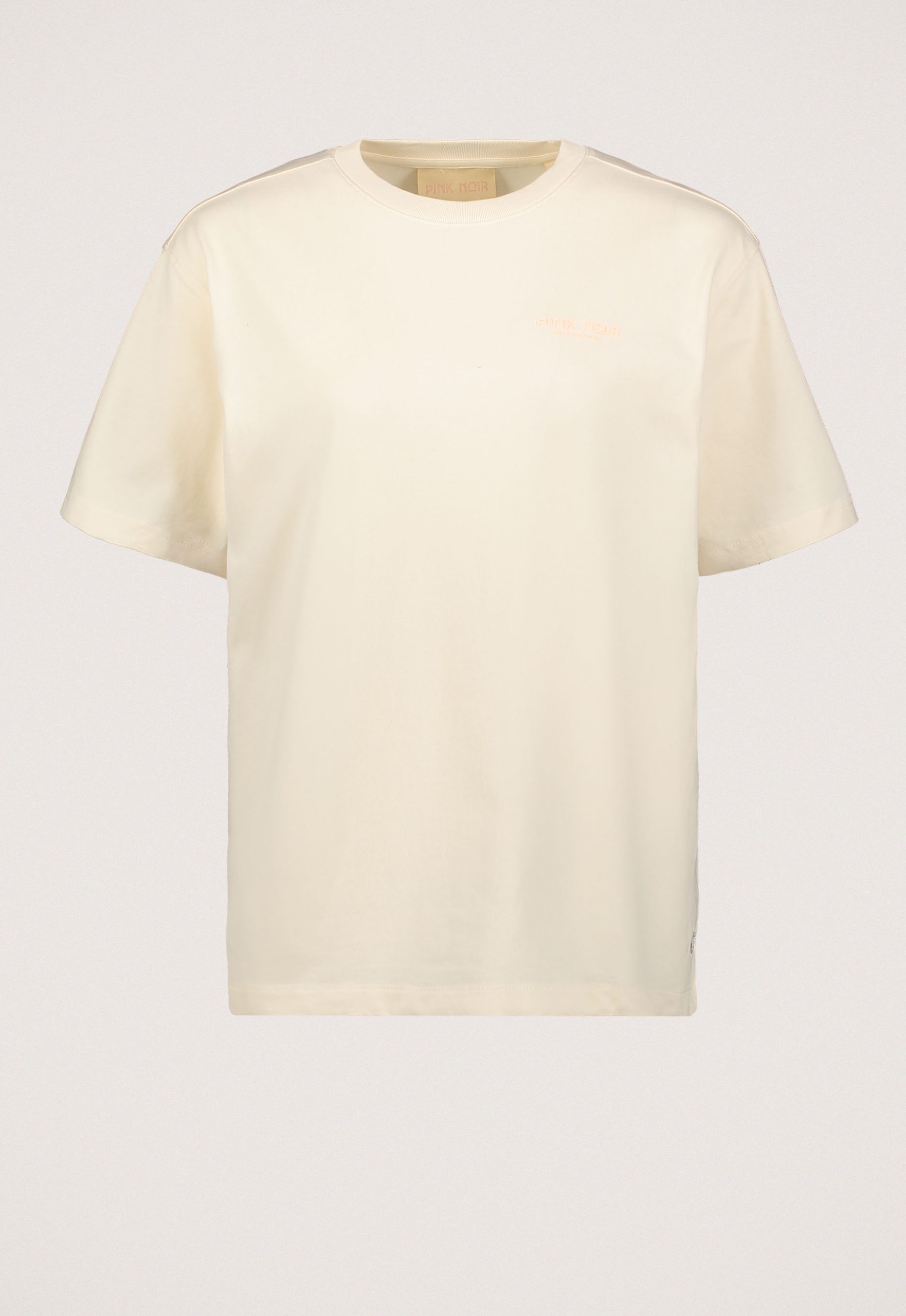 Dit is het PN22243083 Sue T-shirt van het merk Pink Noir. Dit T-shirt is gemaakt van 100% katoen, heeft een ronde hals en korte mouwen. Verder heeft het T-shirt een Pink Noir logo op de borst en een print op de rug.