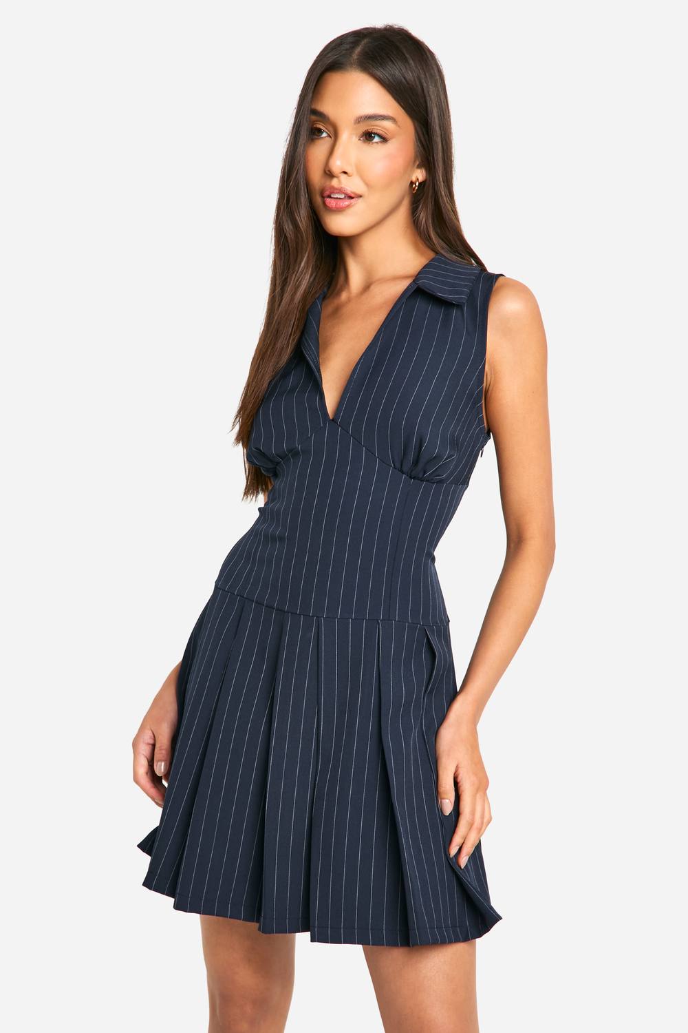Pinstripe Geplooide Mini-jurk