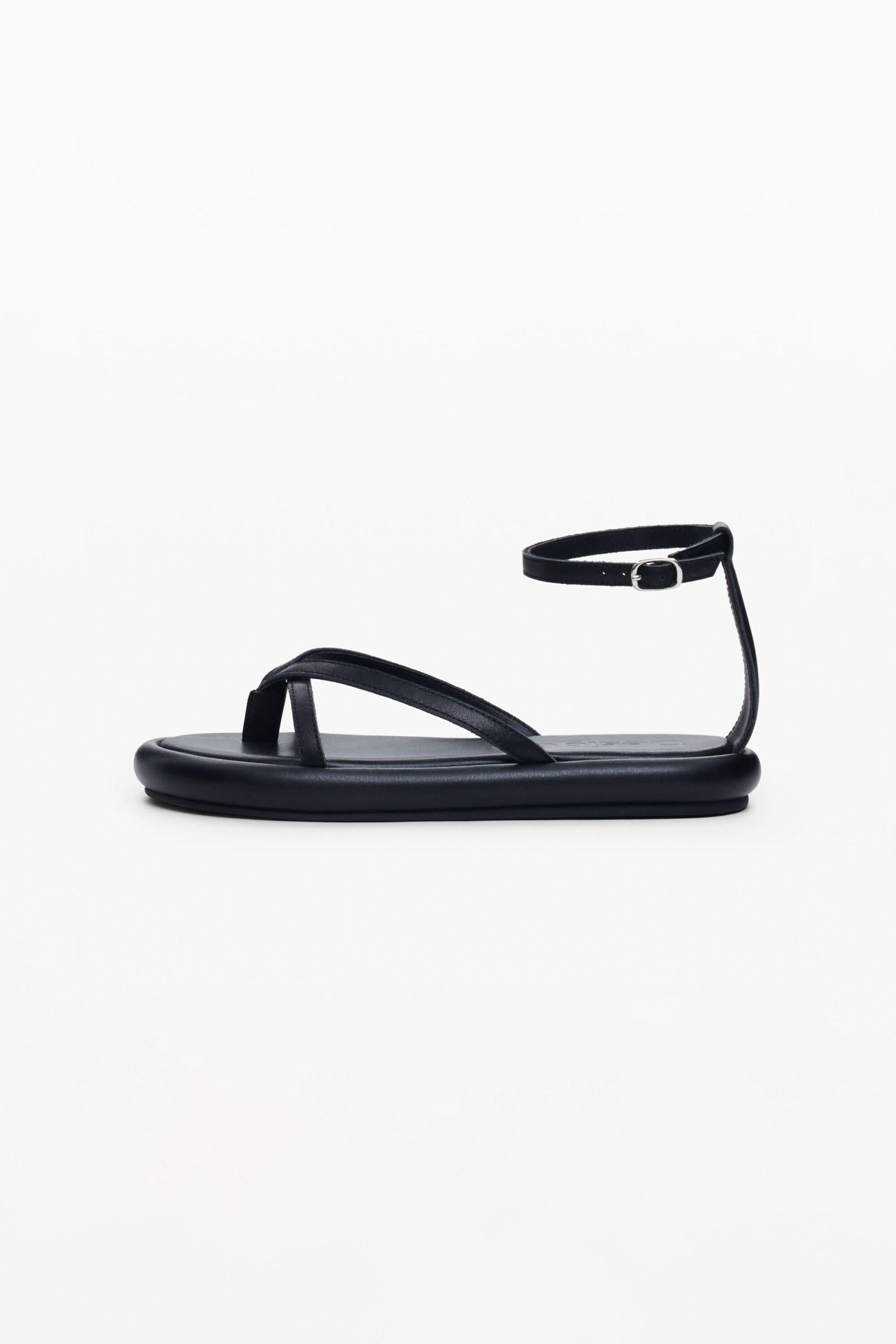 Platte sandalen met bandjes, met enkelband en metalen gesp in de vorm van een hart in effen kleur.