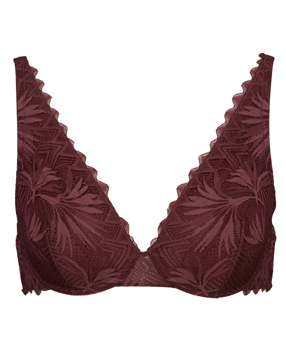 Deze ongevulde bh voor dames is gemaakt van kant met een stof van polyamide en elastaan. De bh heeft een drijvende beugel die voor ondersteuning zorgt zonder de stevigheid van een gewone beugel. De kleur is bruin en zorgt voor een natuurlijke uitstraling.