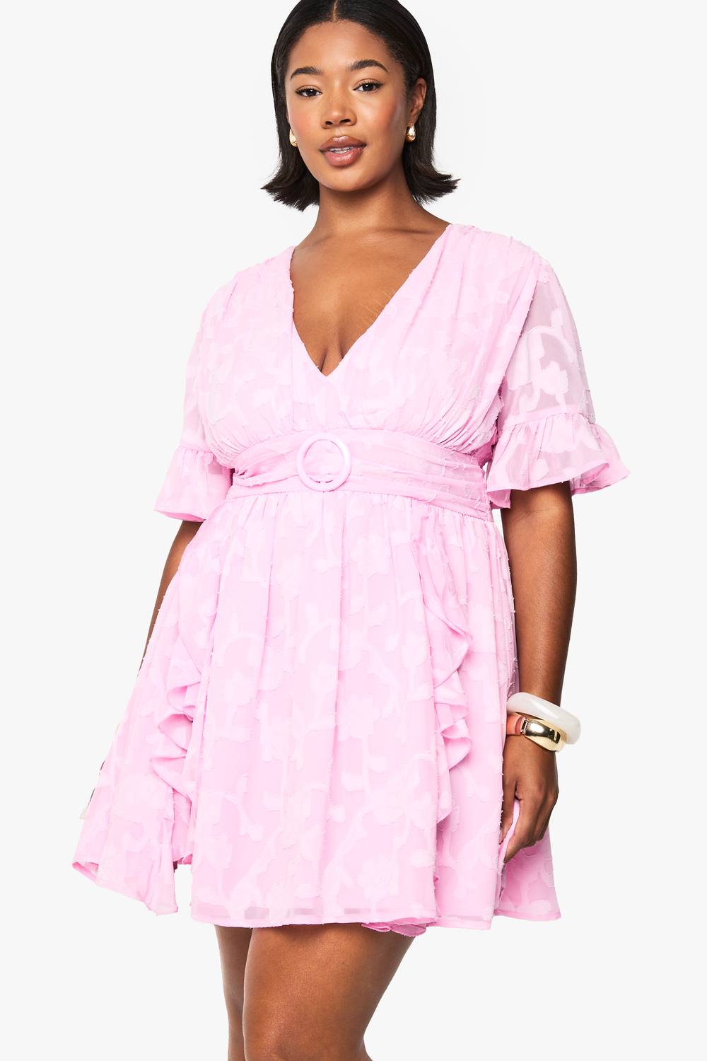 Plus Burnout Bloemenprint Engelmouwen Skaterjurk – Skaterjurk met bloemenpatroon en flatterende V-hals Vrouwelijke fluttermouwen met delicate ruchedetails Ingetrokken taille met decoratieve, met stof beklede gesp Vloeiende skaterrok met neerhangende ruffelaccenten Gemaakt van lichtgewicht geweven crepe-stof voor comfortabele beweging Maak een statement in deze charmante plus size skaterjurk van Boohoo. De speelse V-hals omlijst prachtig je decolleté, terwijl de fluttermouwen een vleugje romantiek aan je silhouet toevoegen. De getailleerde taille met de decoratieve gesp creëert een flatterende vorm, aangevuld met de speelse beweging van de skaterrok. Combineer met band-heeled schoenen en opvallende sieraden zoals getoond voor een avondje uit, of draag het casual met witte sneakers en een spijkerjasje voor daguitstapjes. Dit veelzijdige kledingstuk gaat moeiteloos over van kantoor naar avond, waardoor het de perfecte aanvulling is op je dag-naar-nacht garderobe. Voeg een clutch en een delicate armbandencombinatie toe om je look voor speciale gelegenheden compleet te maken.